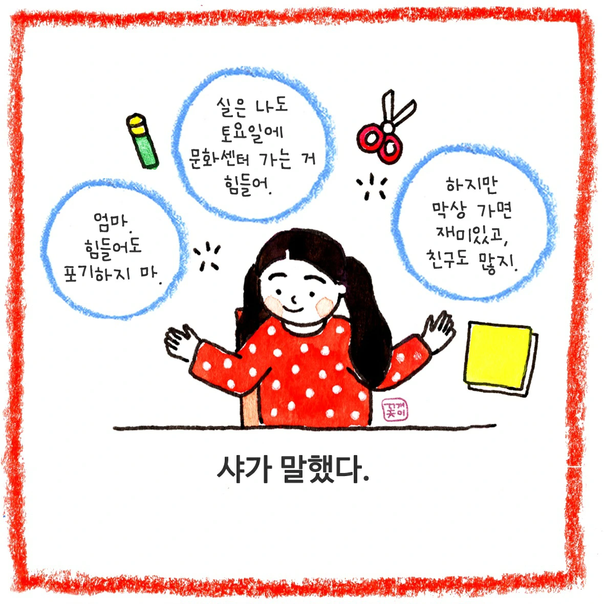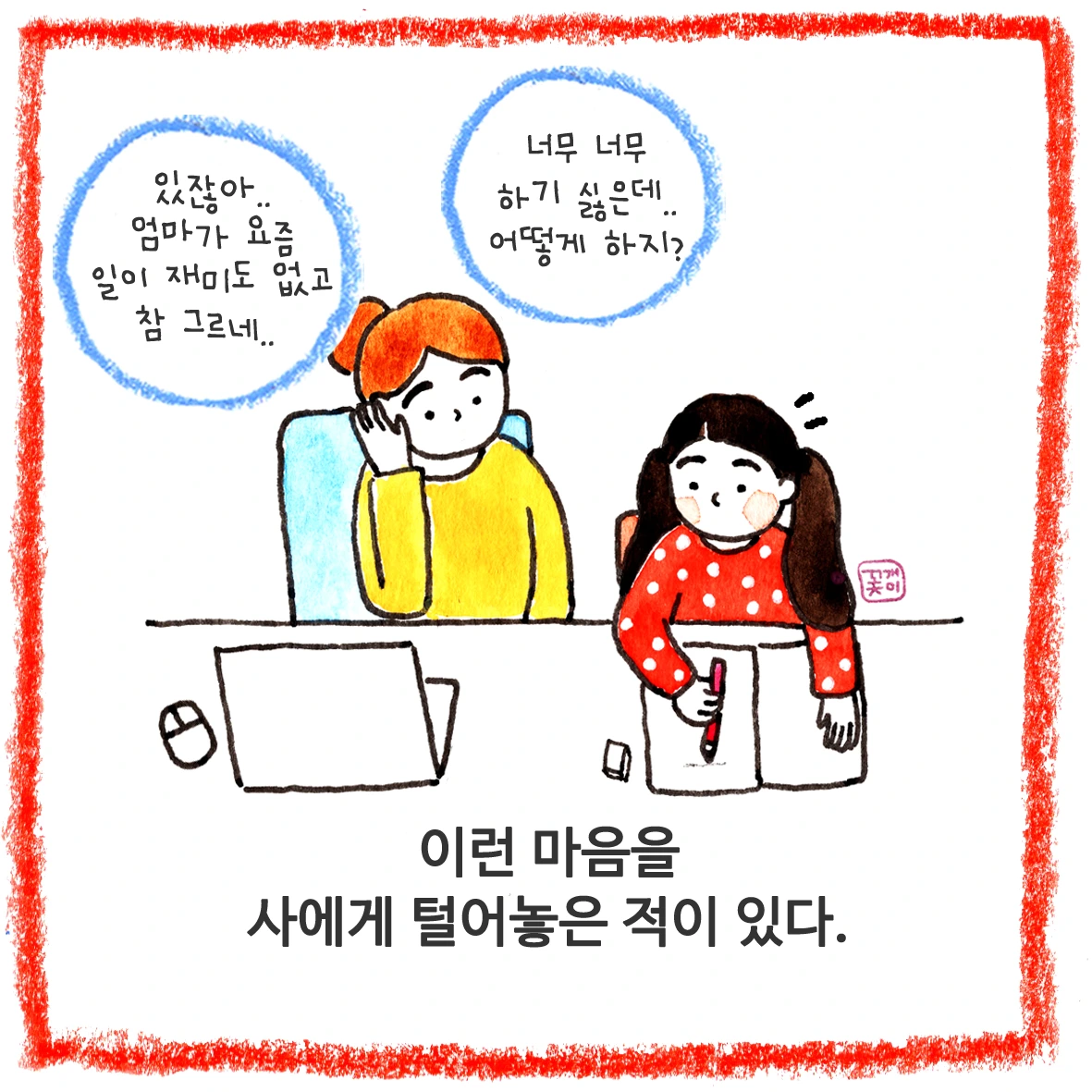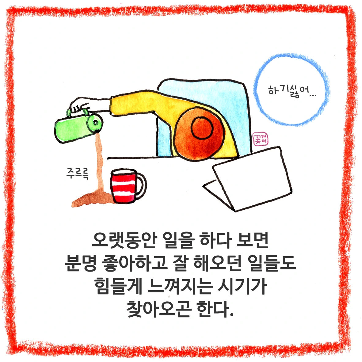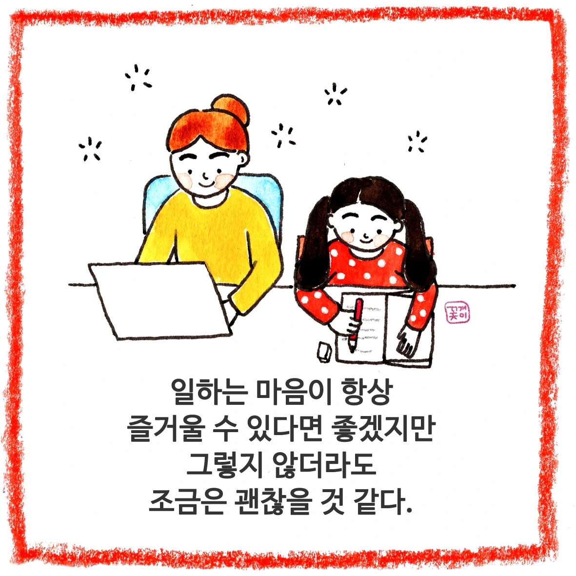<일터의 마음> 연재는 10화 예정이었는데요, 고민 끝에 오늘의 그림일기를 마지막으로 마무리하려고 합니다. 열심히 해서 꼭 마무리하고 싶었지만, 제가 가진 한계를 인정해야 할 것 같아요. 그동안 <일터의 마음>을 읽어주신 분들께 감사드리고요, 시간과 마음의 여유가 허락할 때 다시 도전해 보도록 하겠습니다:)