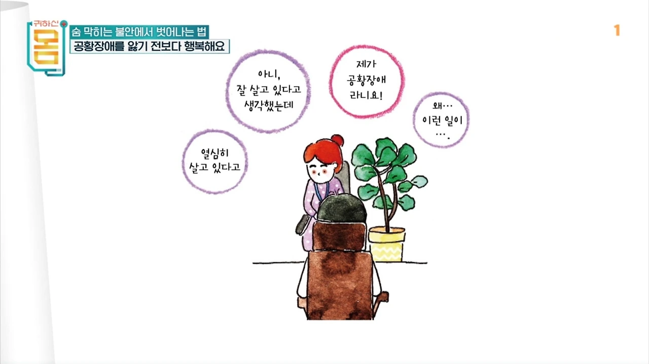 지난주 EBS '귀하신 몸' 66화에서는 '불안'을 주제로 <숨 막히는 불안에서 벗어나는 법>이 방영되었습니다. 귀하신 몸은 현대인의 질병과 건강을 지키는 방법을 알려주는 라이프 스타일 프로그램인데요, 저는 공황장애를 이겨내고 책을 집필한 극복 사례자로 이번방송에 출연하게 되었습니다.