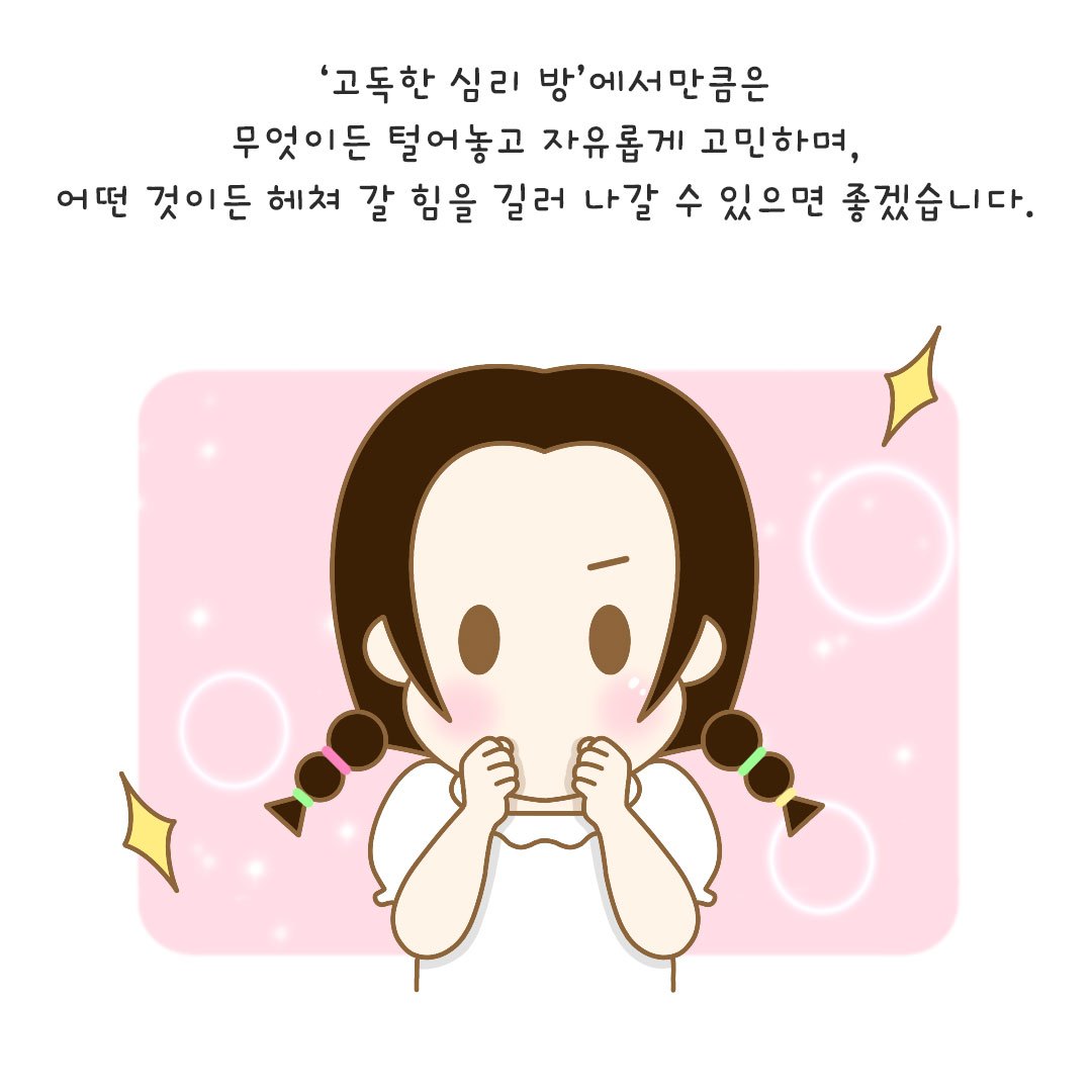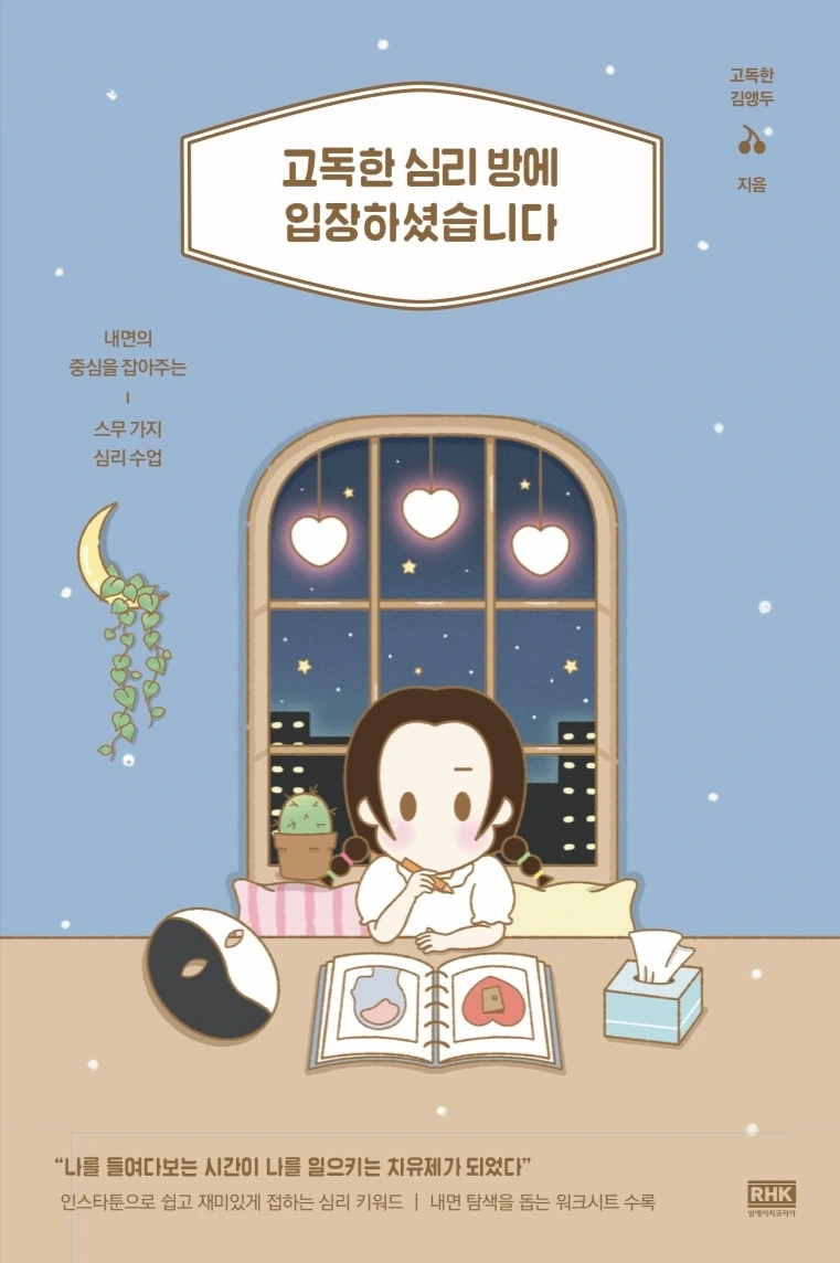 - 안녕하세요, 김앵두 작가입니다. 드디어 제 첫 책이 나왔습니다.(야호!) 사실 이 책의 부재는 ‘내면의 중심을 잡아주는 스무 가지 심리수업’이지만, 절대 제가 잘났거나 완벽하다 생각해서 누굴 가르치기 위해 쓴 책은 아닙니다. 오히려 많이 부족하고, 고민도 많고, 삶이 순탄하지 않았기에 이 책을 쓸 수 있었던 것 같습니다. 저의 여러 내면적인 어려움을 상담심리학 관점에서 들여다보고 그것을 극복해 나아가는 과정이 많이 담겨 있습니다. 여러분이 직접 해볼 수 있는 워크시트도 매 파트마다 수록이 되어있어요! 저의 직접적인 경험도 많이 들어간 만큼 진솔하게 와닿을 것이라고 생각합니다.ㅎㅎ 저 역시 완벽하지 않은 사람이기에 그때그때 새로운 걱정과 고민, 어려움은 늘 생기며 앞으로도 계속 저를 찾아오겠죠. 독자분들도 이 책을 읽었다고 해서 앞으로 어려움이 아예 생기지 않는 것은 아닐 것입니다. 그러나 그러한 어려움이 스스로를 더욱 고통 속으로 빠지게 두는 것이 아닌, 이제는 그 과정 속에서 지친 나를 정성스레 보살필 수 있도록, 그리고 새로운 방식으로 도전할 수 있는 용기를 가질 수 있도록 진심을 담아 격려해 줄 거예요. 동시에 세상의 기대에만 맞춰 살아왔다면 이제는 '나'를 위한 삶을 살아볼 수 있도록 스스로가 해답을 찾아가게끔 조력의 역할을 해 줄 것입니다. 그 누구도 아닌 이 책을 읽는 주인공인 '내'가 스스로 해낼 수 있도록 말입니다. 그럼 이 책의 주인공이자, 삶의 주인공인 여러분을 고독한 심리 방에 초대합니다!