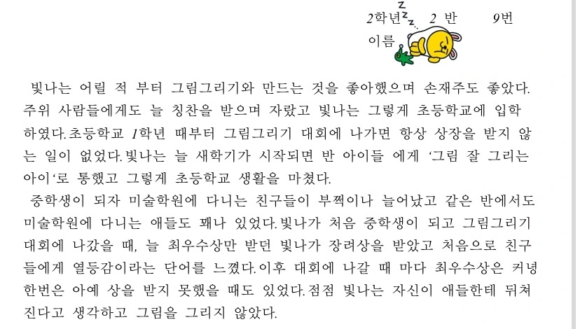 이 카톡을 보고 저는 처음에 정말 당혹스러웠습니다. 선생님의 열정과 진심도 굉장히 놀라웠지만 분명 그때의 글은 형편없을 거란 걸 알기에. 파일을 여는 것이 꽤나 겁이 났고 '이.. 이 부끄러운 걸 가지고 계시다니...!' 하는 마음이 들었습니다. 그리고 열어 본 결과... 역시나 형편없었습니다.