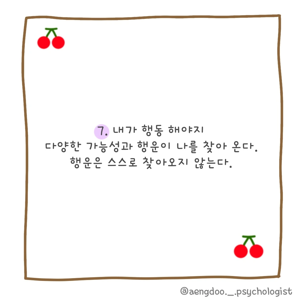 7. 내가 행동 해야지 다양한 가능성과 행운이 나를 찾아 온다. 행운은 스스로 찾아 오지 않는다.