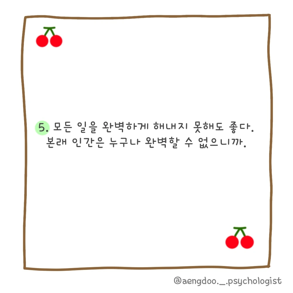 5. 모든 일을 완벽하게 해내지 못해도 좋다. 본래 인간은 누구나 완벽할 수 없으니까.