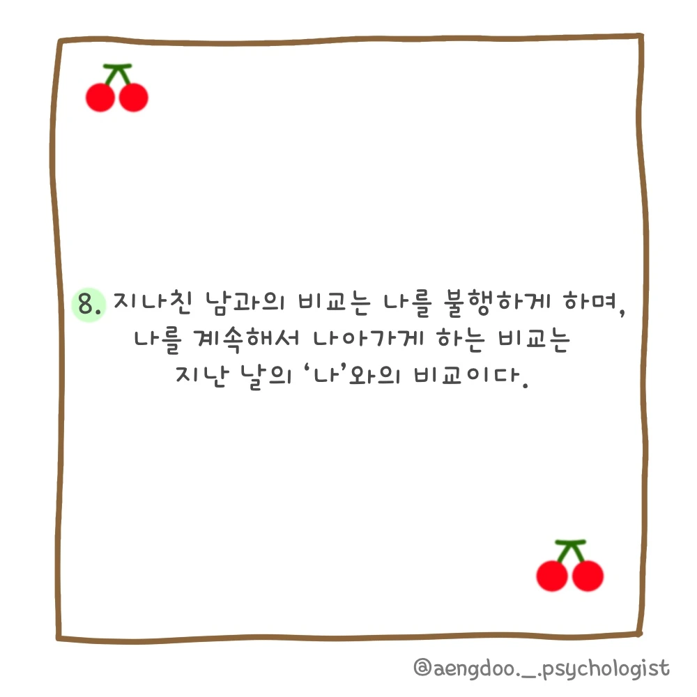 8. 지나친 남과의 비교는 나를 불행하게 하며, 나를 계속해서 나아가게 해주는 비교는 지난 날의 ‘나’와의 비교이다.