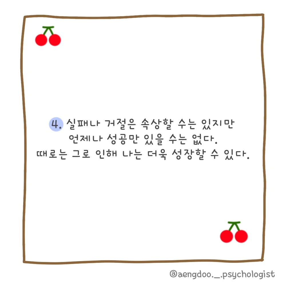 4. 실패나 거절은 속상할 수는 없지만, 언제나 성공만 있을 수는 없다. 때로는 그로 인해 나는 더욱 성장할 수 있다.