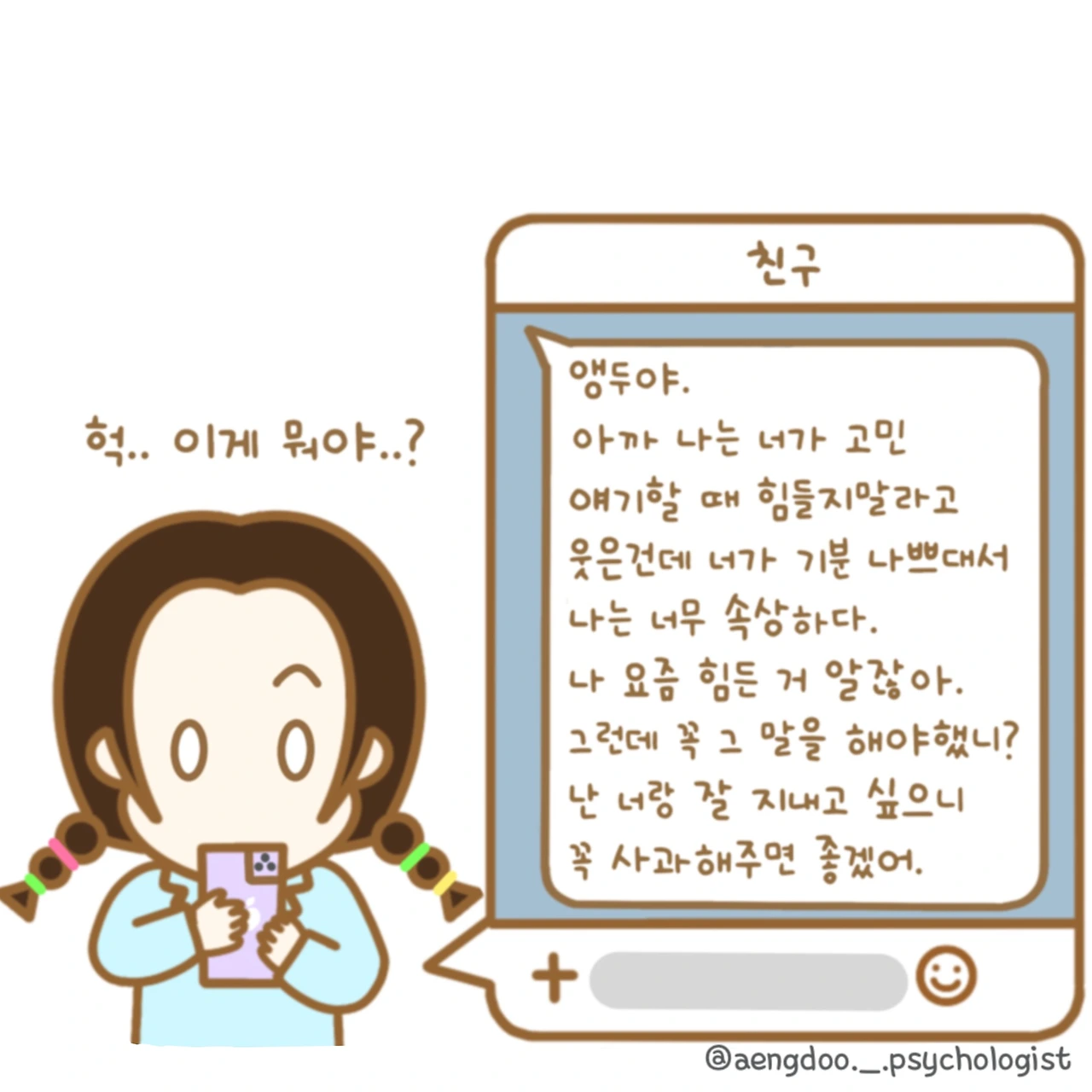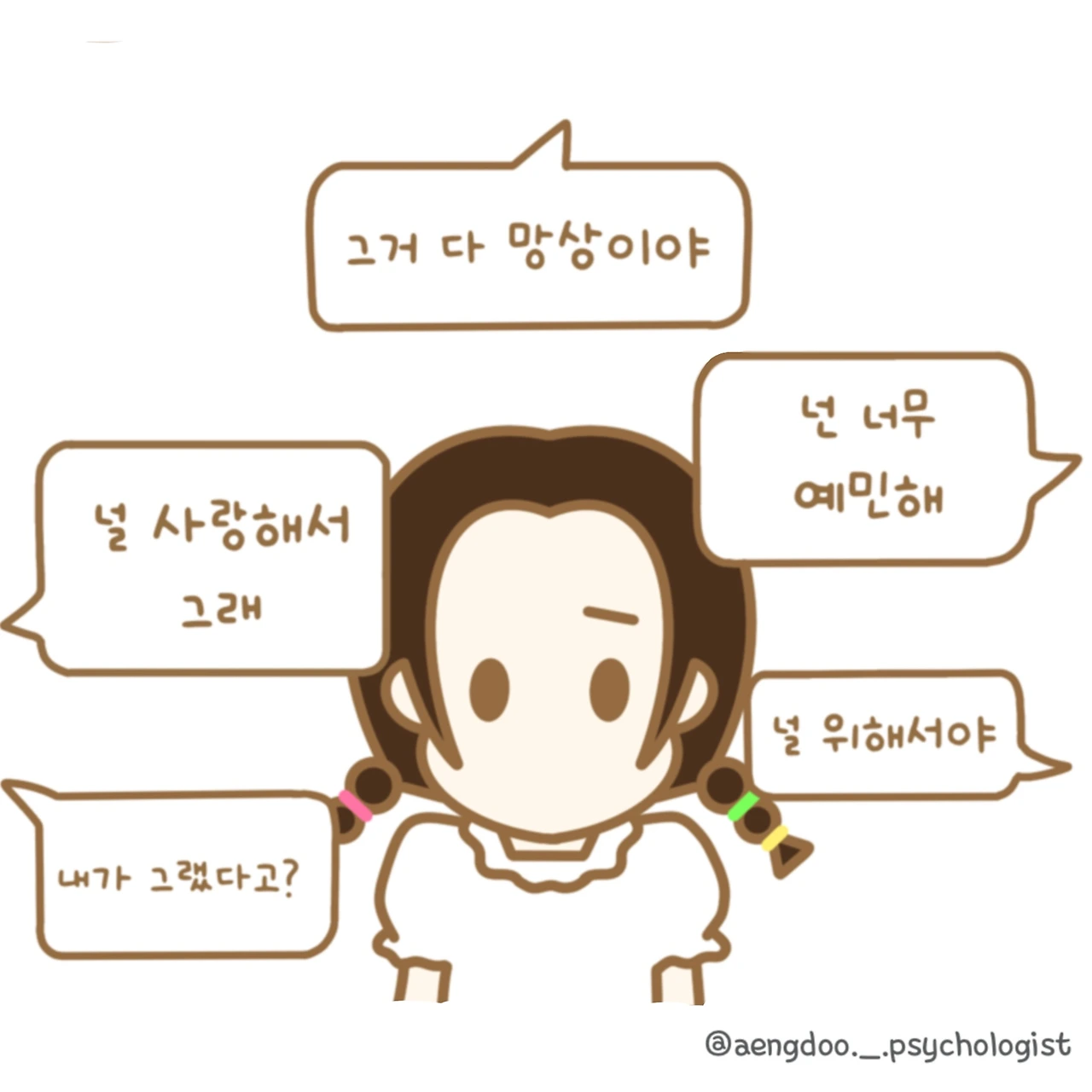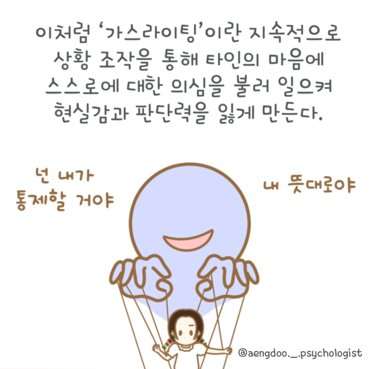 여러분도 혹시나 내 생각이 의심되고 관계에서 찝찝함을 경험하고 계시다면 혹시 내가 가스 라이팅을 당하고 있는지 한 번쯤 생각해보세요 :)