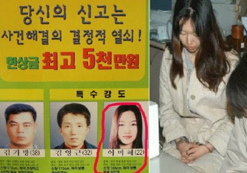 여러 차례의 납치강도 사건을 벌인 이미혜(22)의 수배전단지를 보고 팬카페에 3만 명이 몰렸다는 사건으로 '용서해 줘라 내가 숨겨줄게'라는 댓글이 달릴 정도로 우리나라 외모지상주의의 현주소를 보여주는 사건이다.
