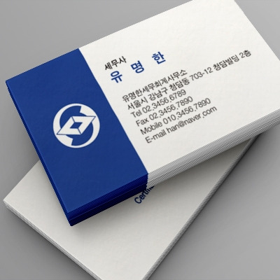 돈을 취급하는 세무사의 명함, 대부분의 은행이나 증권가의 웹사이트도 블루 계열이다.
