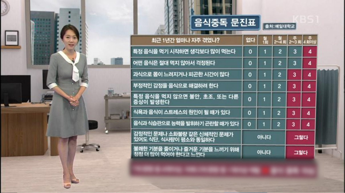 아래 문진을 통해 내가 음식에 중독되어 있는지 테스트를 해볼 수 있다.