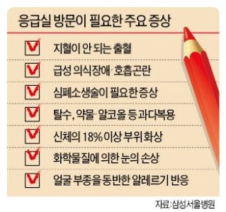 연락하여 응급실로 즉시 이동해야 한다.