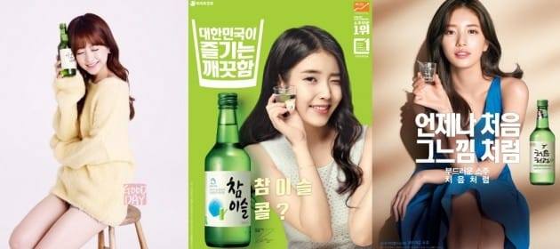 유명 소주 광고는 가장 인기 있는 운동선수, 슈퍼스타, 가수나 배우가 하게 되며 소주 광고를 찍었다는 사실 하나만으로 유명인임을 인정받는다.