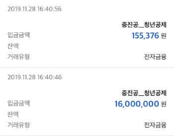 청년내일채움공제 드디어 수령!