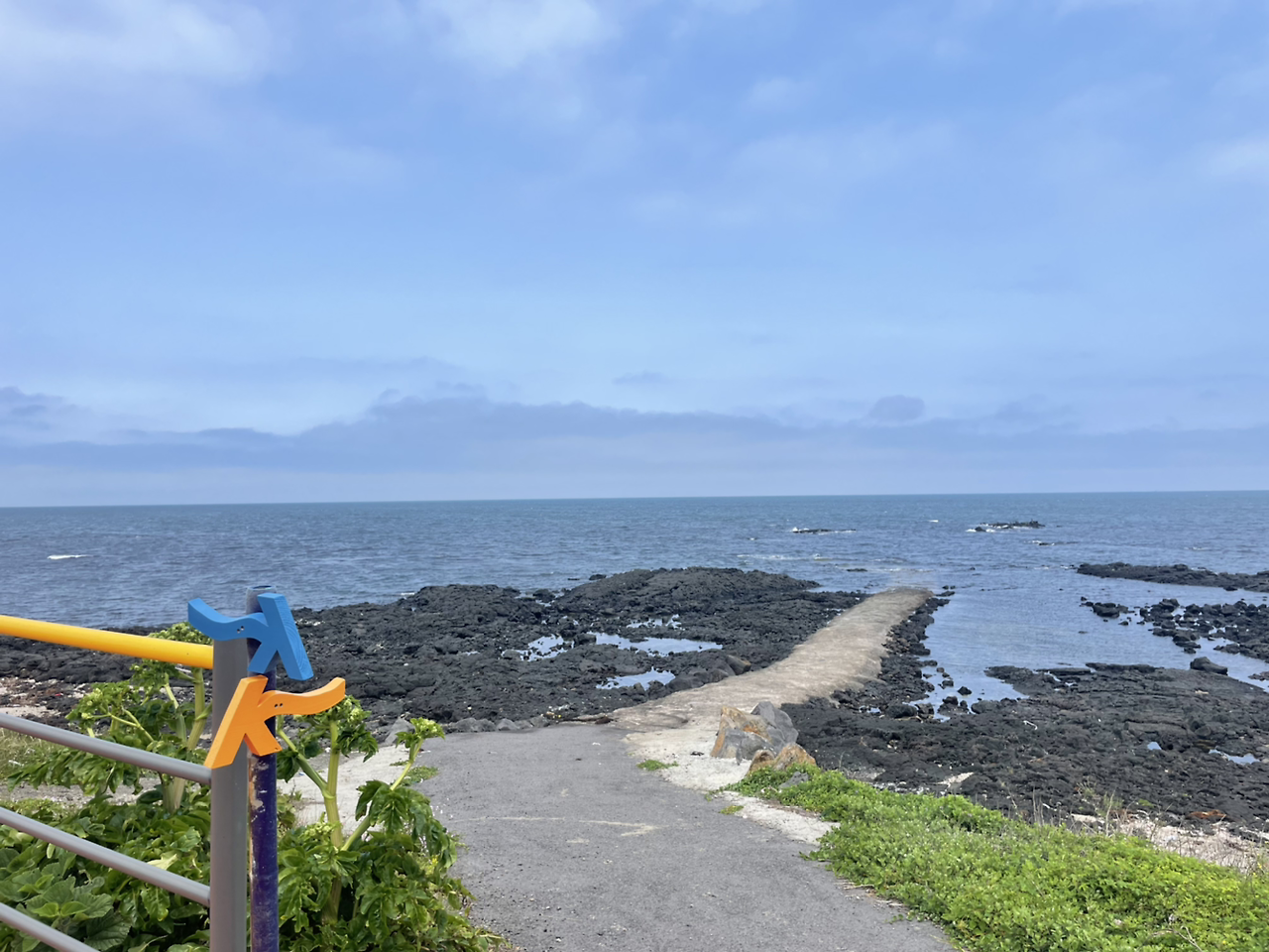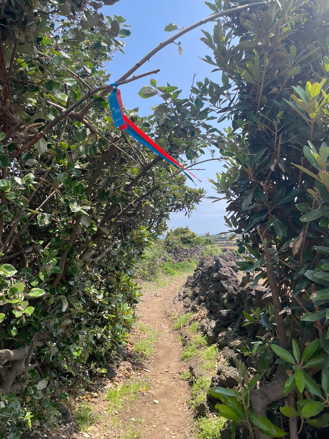 특별한 계획 없이 동네만 정하고 잡은 숙소. 근데 이 숙소 바로 앞에서 시작되는 올레길 코스가 있단다. 될놈은 다 된다더니 올레길 마저 나를 돕네~ㅎㅎ 속으로 뿌듯해하며 조식을 먹고 바로 숙소를 나섰다. 원래 길치인지라 '올레패스 앱을 계속 켜고 다녀야 하나.. 보조 배터리가 없는데..' 걱정을 했는데 걱정이 무색하게 올레길 표시가 곳곳에 있어 그걸 따라가기만 하면 됐다. 오히려 폰을 보지 않고 리본과 화살표만 찾으면서 가니까 미션을 클리어하는 거 같아서 지루하지도 않고 좋았다.