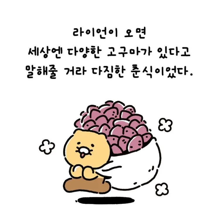 요즘 고양이 캐릭터 중에서 가장 뜨고 있는 고양이는 역시 카카오프렌즈의 춘식이일 것이다. 춘식이는 2020년에 등장하여 길고양이로 등장하였지만 라이언에 의해 입양되어 정식으로 카카오프렌즈로 입성한 고양이로 다른 걸 먹지 않고 고구마를 주식으로 하는 것이 특징이다. 춘식이가 고구마에만 집착하는 모습은 귀엽지만 수의사들이 보기엔 분명 기겁할 상황이다.(사료를 전혀 먹지 않고 생선, 통조림 등 전부 먹지 않는다는 걸 알면 더욱 충격받으실 것 같다.) 춘식이가 지금처럼 고구마에만 집착하게 될 경우 어떤 일이 발생할 수 있을까?