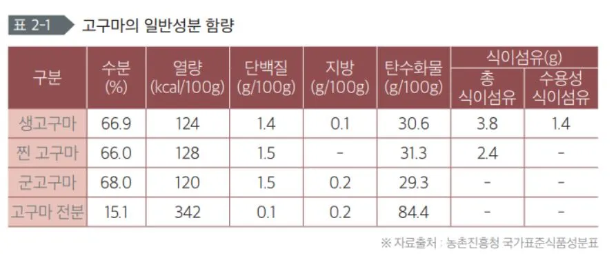 그렇다면 고구마의 성분을 한 번 살펴보자. 어차피 생고구마로는 거의 먹지 않을 테니 춘식이가 좋아하는 찐고구마 위주로 살펴보고자 한다. 찐고구마 기준 100g당 단백질은 겨우 1.5g, 탄수화물은 무려 31g이 있다. 심지어 고양이가 두 번째로 잘 사용하는 지방은 아예 존재하지도 않는다. (심지어 저 단백질이 고양이에게 꼭 필요한 단백질인지도 불확실하다.) 우선 춘식이가 4kg이라는 가정하에 필요한 하루 단백질은 약 22g 정도 되는데 이 22g을 채우기 위해선 고구마 약 1470g이 필요하다. 고구마만 1.5kg을 먹어야 하루 단백질을 겨우 채우는 셈. 그러나 그렇게 먹게 되면 무려 455g의 탄수화물을 먹게 되는데, 이를 칼로리로 환산하면 무려 1820kcal이다. 춘식이가 하루에 먹어야 할 칼로리가 230kcal 임을 감안한다면 너무 많은 칼로리가 탄수화물로 들어오는 셈이다. 단순히 하루에 필요한 단백질만 채우기 위해 저렇게 많은 탄수화물이 강제로 들어오는 셈이다. 이처럼 과도한 잉여 탄수화물은 고양이의 각종 조직과 내장 등에 축적되어 천천히 고양이의 수명을 깎아먹을 것이다.