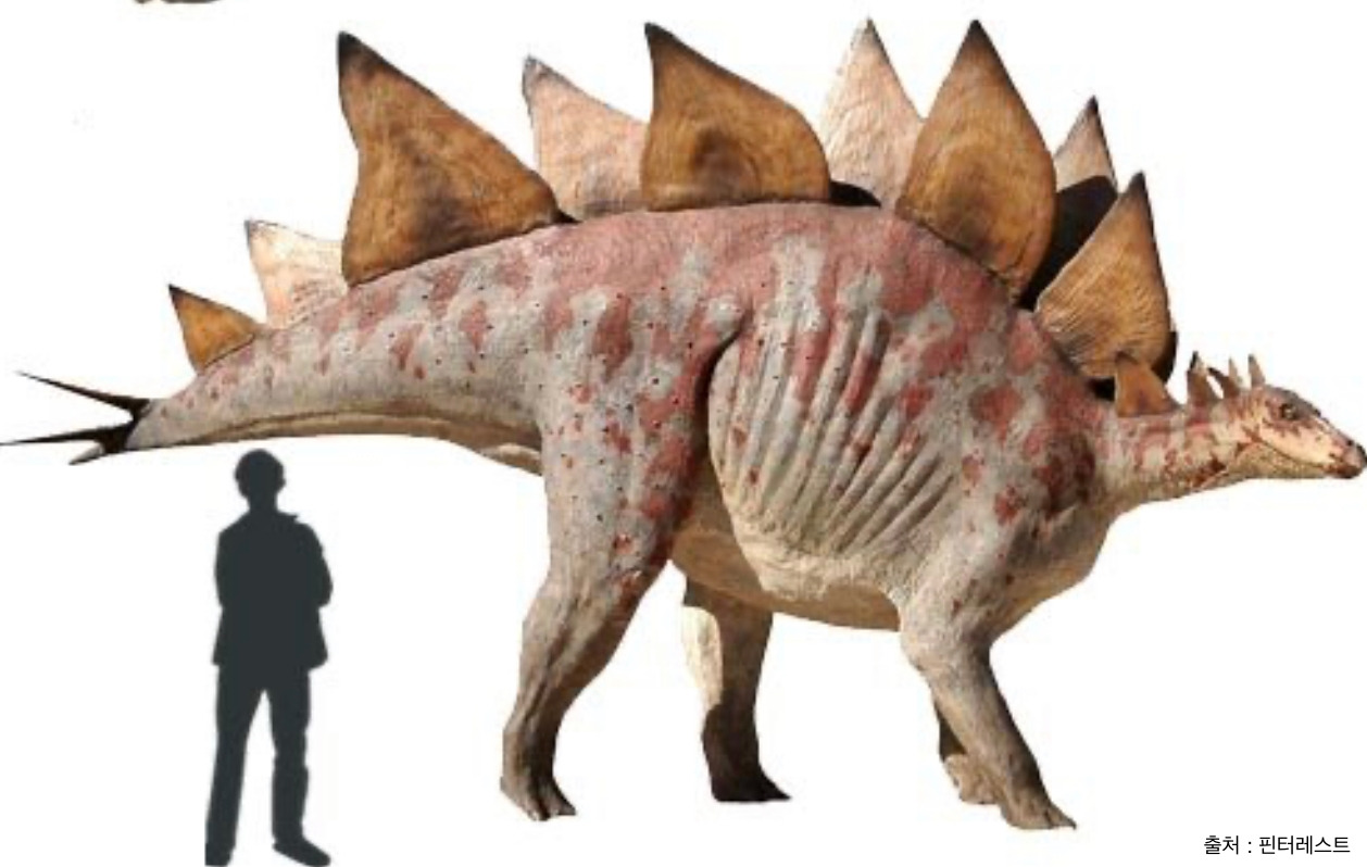 공룡 죠르디의 특징은 몸통 위에 붙은 구조물입니다. 이러한 구조물을 가질 수 있는 대표적인 공룡은 바로 스테고사우루스입니다. 쥐라기 후기 시대에 살던 이 공룡은 검룡류(쥐라기 후기에 살던 골반 골격의 형태가 새와 닮은 초식공룡을 뜻함)로 몸길이는 약 9m, 몸무게는 7t 정도 나간다고 합니다. 가장 특징적인 구조물은 바로 등에 있는 골판과 꼬리에 있는 뼈로 된 가시가 특징적이며 육식 공룡에 방어하기 위해 사용되었을 것이라고 추측하고 있습니다.