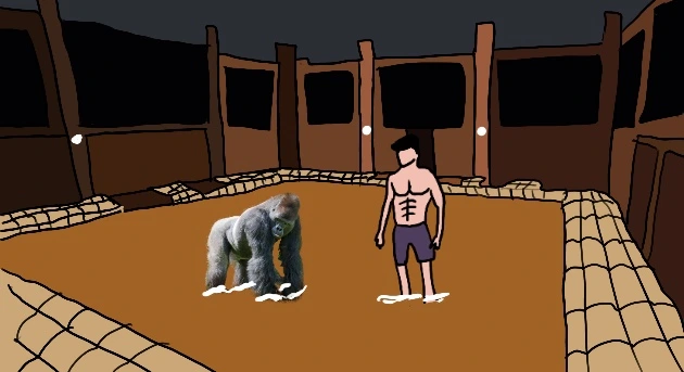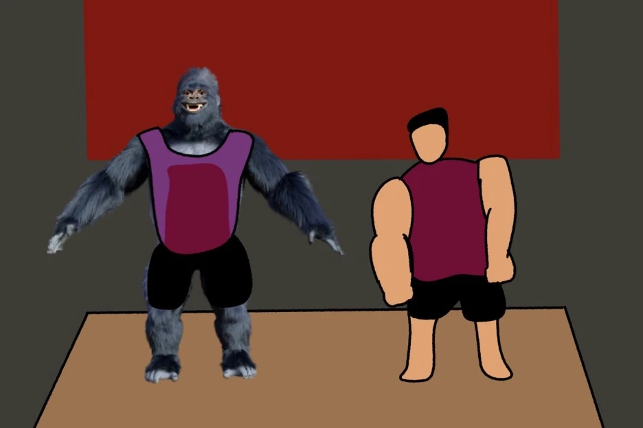 마지막 2인전에 올라 갔다고 상상하는 고릴라 선수