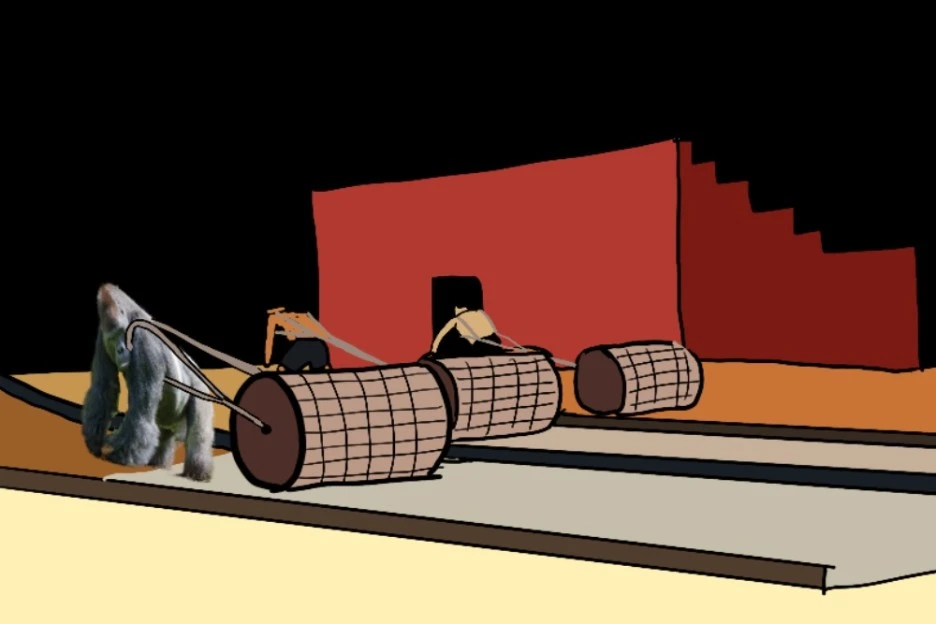 다음도 팀 퀘스트입니다. 살아남은 6개의 팀 중에서 단 4팀만 살아남을 수 있습니다. 퀘스트는 광산과 철봉인데요. 광산 퀘스트는 광산의 짐차에 짐을 실어 나릅니다. 한 개당 40kg인 짐 50개를 2명이서 가장 빨리 옮기는 팀(1인전의 경우 30개)이 승리하는 방식인데요. 이 게임에서 중요한 건 근력이며, 짐차를 끌고 이동할 지구력도 중요합니다. 그러나 근력이 너무 압도적으로 강해서 짐차가 무겁지 않다면 근지구력은 덜 필요하겠군요. 딱 고릴라가 그럴 것 같습니다. 고릴라는 체력이 약하니 1인전에 나갔을 것 같은데요. 고릴라가 손으로 들 수 있는 무게는 무려 1톤, 짐차에는 바퀴가 달렸으니 고릴라에게는 너무 가벼웠을 것입니다. 그리고 무게가 200kg인 고릴라에게 40kg의 짐이라면 상대적으로 가볍게 들었을 것 같습니다. 60kg의 사람이 40kg의 짐을 드는 것과는 훨씬 수월하겠죠? 그래서 고릴라는 1인 광산 퀘스트에서 1등을 쉽게 가져왔을 것입니다.