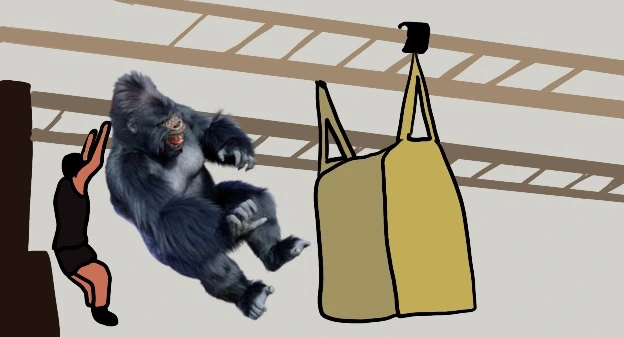 다음 라운드는 철봉입니다. 철봉으로 타고 가면서 철봉에 달린 짐을 반대쪽으로 빠르게 옮기는 팀이 승리합니다. 그러나 고릴라는 철봉에 출전한다면 고전할 것 같습니다. 고릴라도 나무는 잘 탄다고는 하지만 상대적으로 무거운 체격을 가진 실버백 고릴라는 나무를 잘 안 탄다고 합니다. 체력이 약한 고릴라는 얼마 가지 못하고 떨어질 수도 있을 것 같은데요. 현명한 팀장은 고릴라를 철봉에는 출전시키지 않을 것 같습니다.