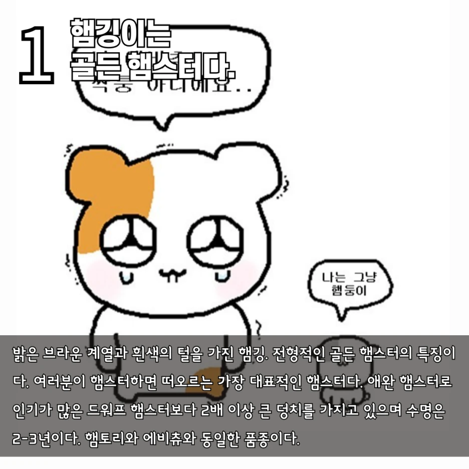 어쨌거나 햄깅이는 골든 햄스터로 보이는데요. 햄깅이와 같은 종으로는 에비츄, 햄토리가 있습니다.