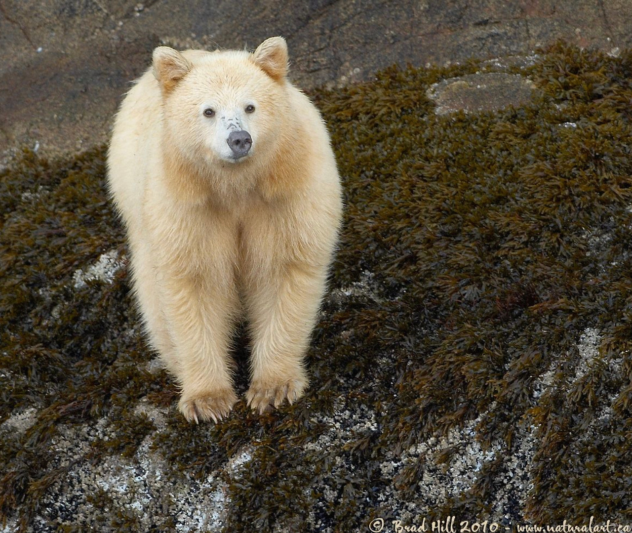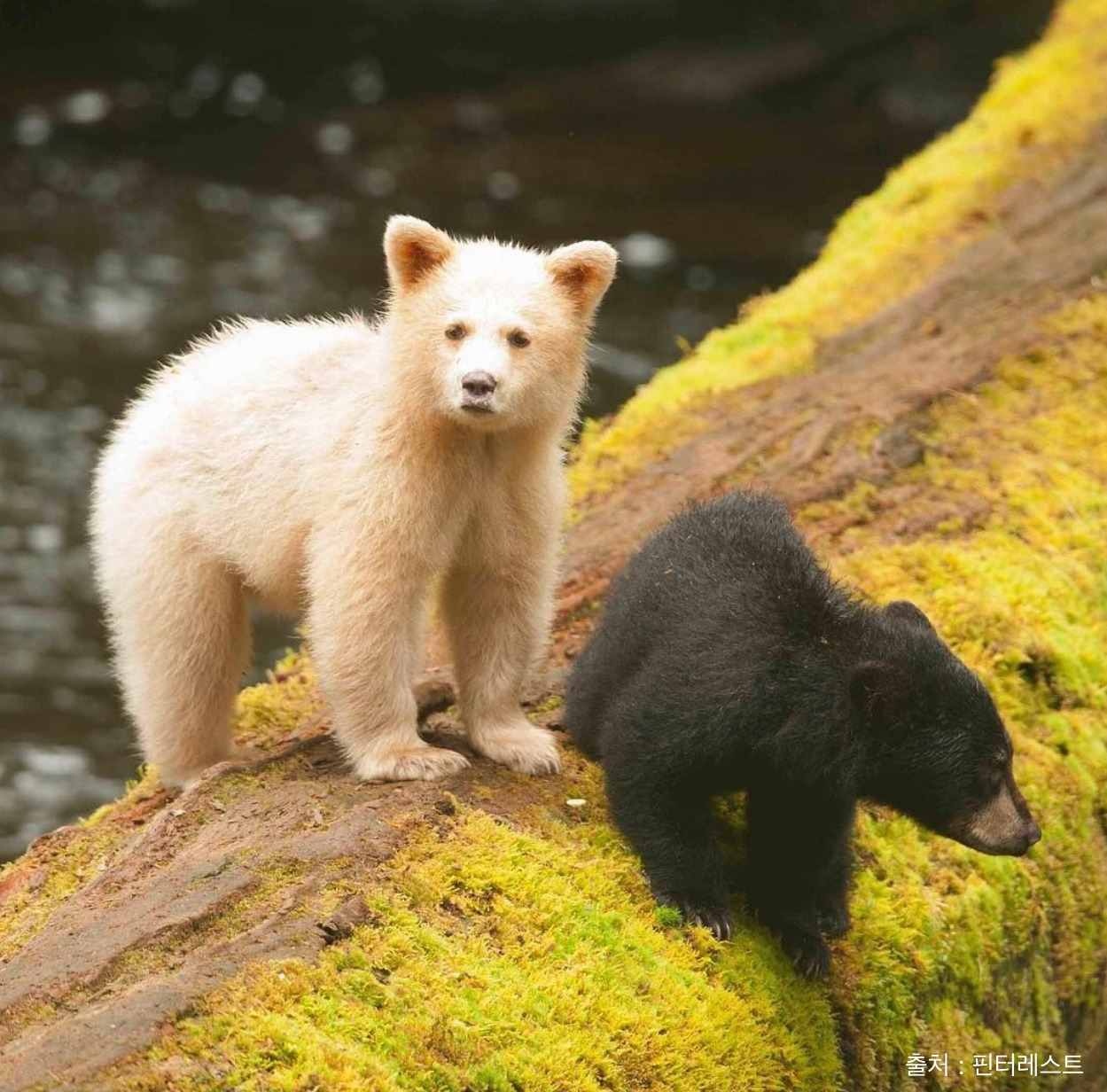 커모드 베어는 아메리칸 흑곰의 아종으로 캐나다 브리티시 컬럼비아의 중부와 북부의 해안 지역에서 살고 있습니다. 커모드 베어라도 대부분이 검은색이지만 100-500마리 정도는 흰색(보기에 따라서 밝은 황색)을 보입니다. 커모드 베어가 흰색 털을 가지는 이유는 그저 유전자 하나(MC1R)의 변이로 인해 생긴 것이며 알비노는 아닌 것으로 밝혀졌습니다. 몸길이는 1.5m-1.8m로 무게는 300kg까지 나갈 수 있다고 합니다.