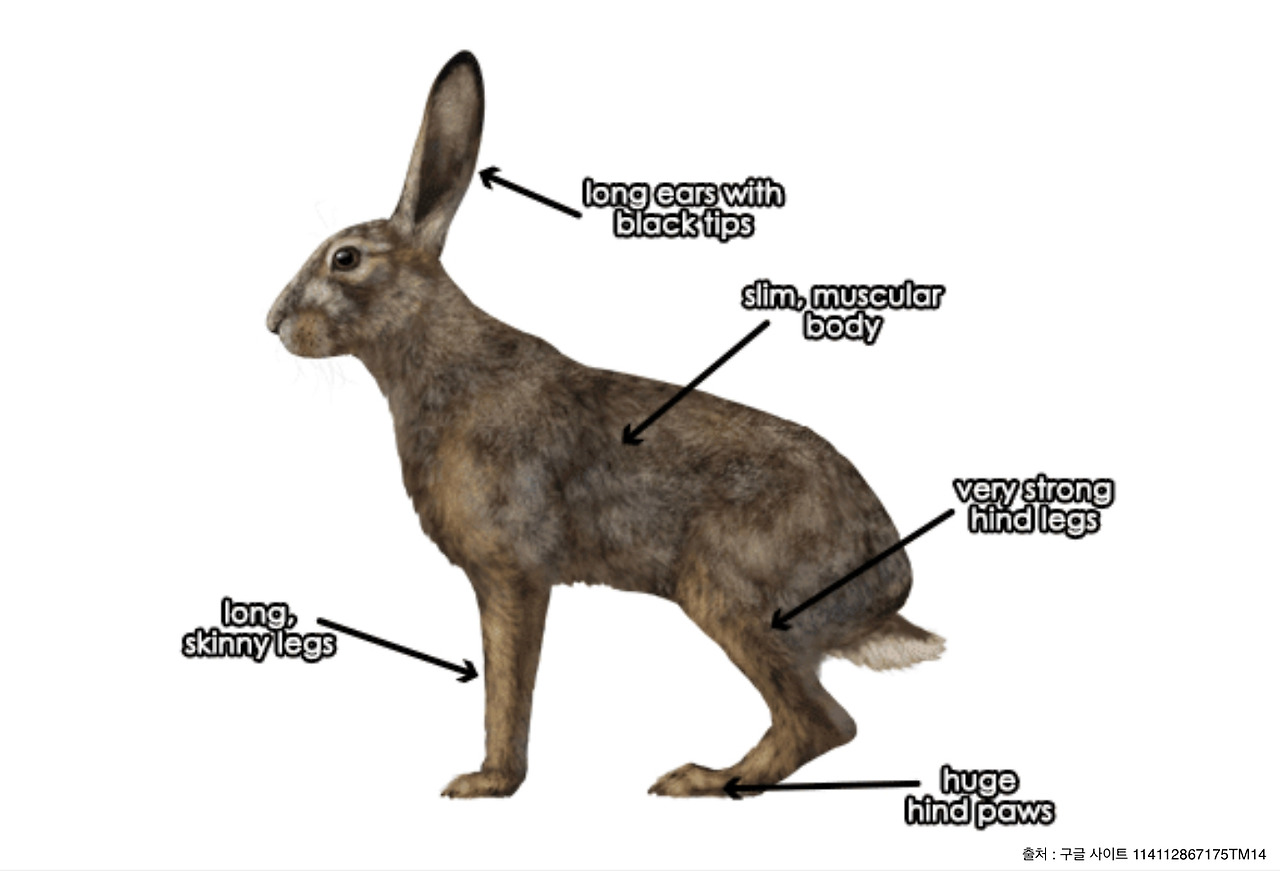 토끼는 앞다리에 비해 뒷다리가 깁니다. 또한 앞다리에 비해 매우 탄력적이고 근육이 발달되어 있어 스프링이 튀어나가는 것 같은 탄력과 추진력을 바탕으로 포식자들을 따돌립니다. 이러한 추진력 덕분에 20m 단거리를 뛰었을 때 시속 80km까지 가능하다고 합니다. 그러나 안타깝게도 마이멜로디는 앞다리와 뒷다리가 크게 차이가 없어 보이며 심지어 뒷다리가 매우 짧아 보입니다. 따라서 마이멜로디는 다른 토끼들에 비해 매우 느릴 것이며 탄력이 부족하여 천적들에게 도망가기 힘들 것입니다. 마이멜로디는 밖에 돌아다니며 명을 재촉하는 것보다는 집 안에서 안전하게 주인들의 케어를 받는 편이 나을 것 같습니다.