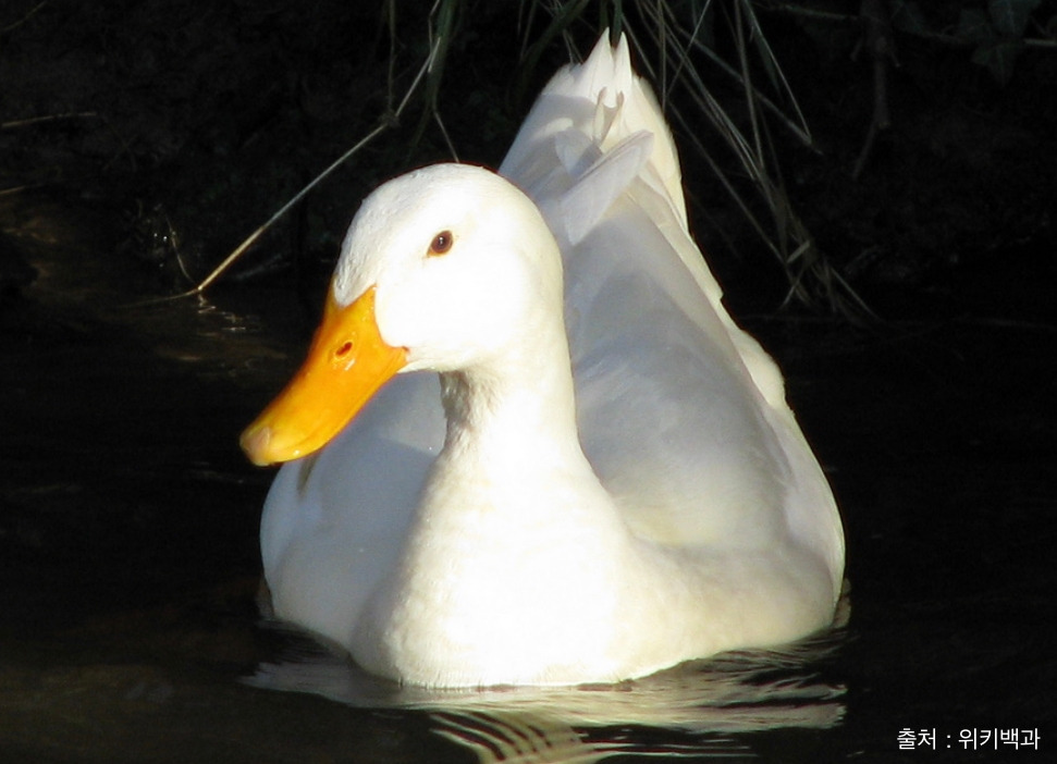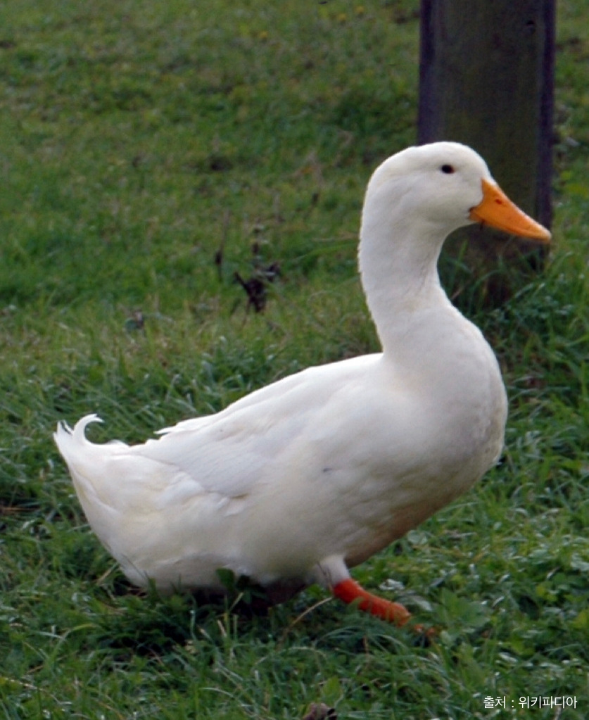 도날드덕의 특징은 노란색의 오리발, 흰색 털을 가진 몸통, 노란 부리가 특징입니다. 이러한 특징을 가진 종은 집오리(domestic duck)입니다. 다만 도날드덕의 출생이 미국임을 감안하여 미국 집오리 종인 American pekin이라고 추측해보았습니다. American pekin은 미국의 집오리 품종으로 19세기 중국에서 들여온 청둥오리를 이용하여 만들었다고 전해집니다. 많은 곳에서 다양한 방식으로 사육되었지만 대부분은 미국 뉴욕의 롱아일랜드에서 사육되었다고 하며 그 영향으로 롱아일랜드 덕(Long island duck)이라고 불리기도 합니다. 무게는 수컷이 4.5kg, 암컷이 4.1kg 정도라고 하며 기존의 우리나라 집오리와 크게 다른 것은 없습니다.