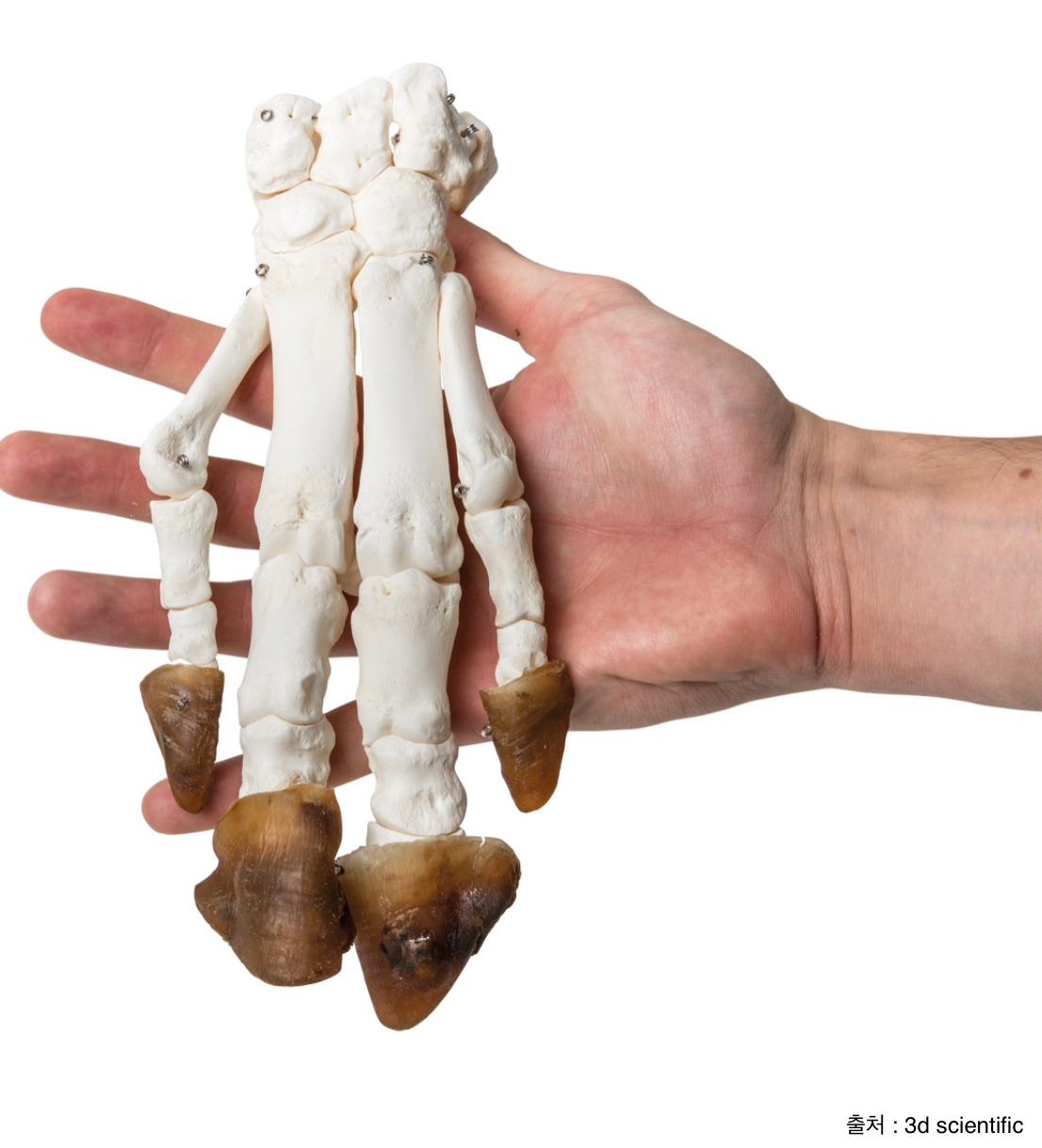 4개의 발가락을 가진 돼지 / 출처 : 3d scientific(좌), National hog farmer(우)