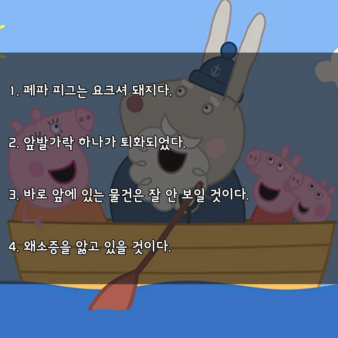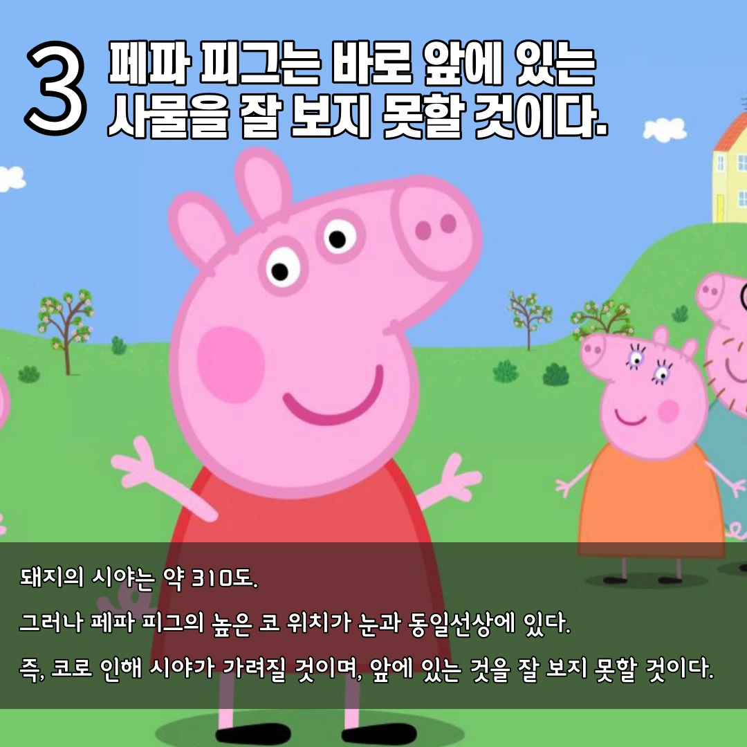 페파 피그는 바로 앞에 있는 사물을 잘 보지 못할 것이다.