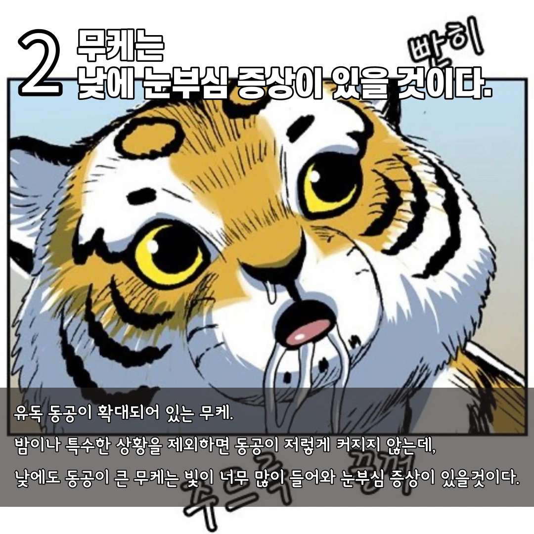 무케는 낮에 눈부심 증상이 있을 것이다.