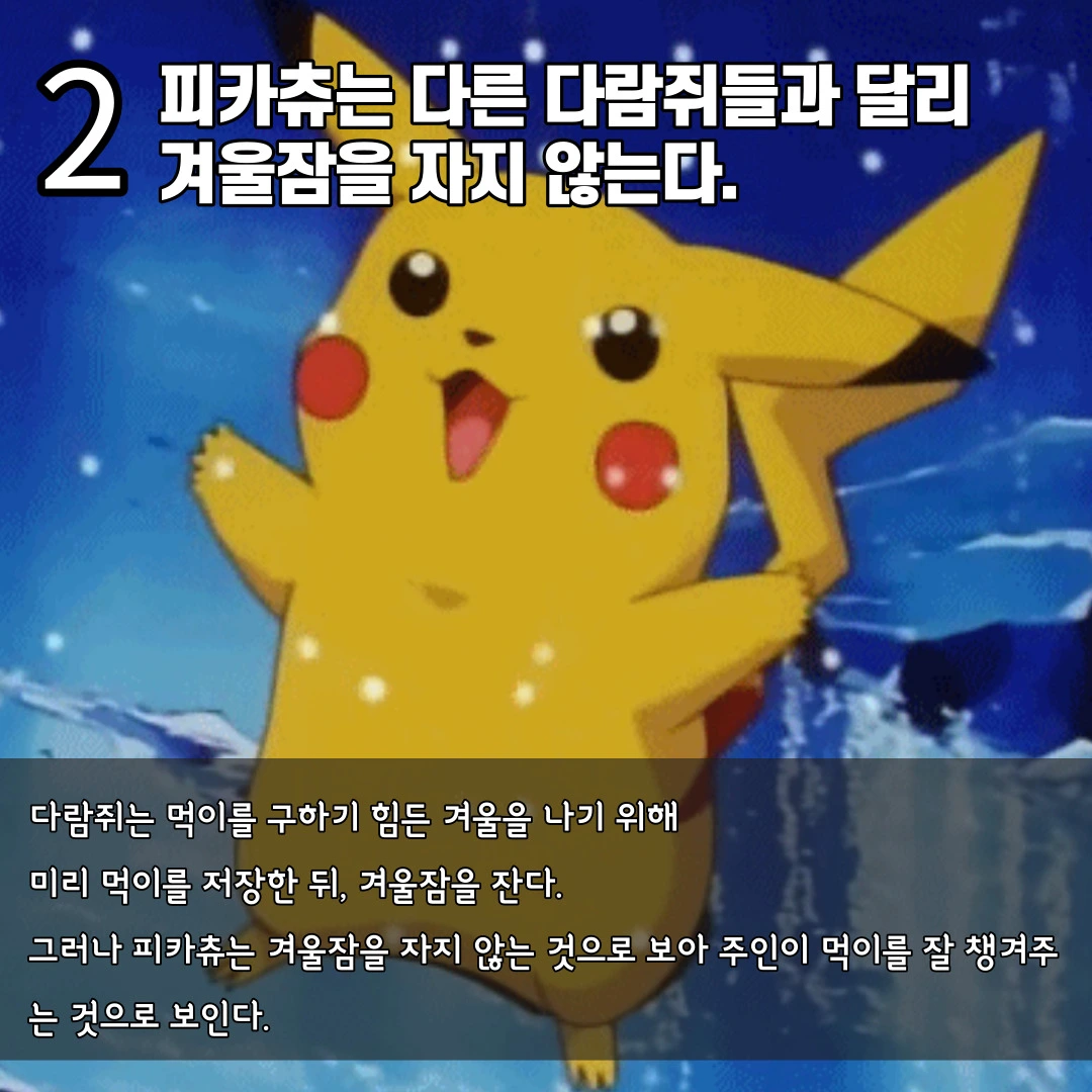 피카츄는 다른 다람쥐들과 다르게 겨울잠을 자지 않는다.