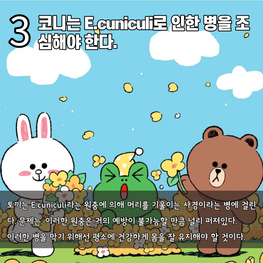 코니는 E.cuniculi라는 원충성 질병을 조심해야 한다.