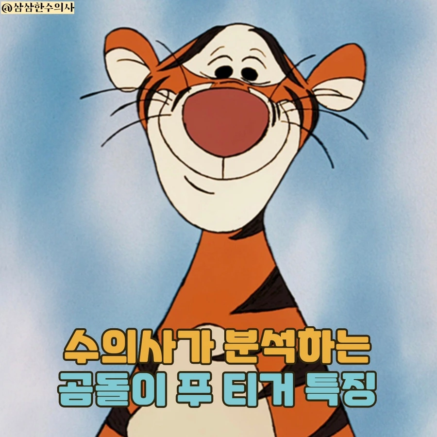 호랑이 캐릭터는 유명한 캐릭터는 생각보다 없습니다. 88올림픽 때의 호돌이는 사실상 일회성이고 요즘에 등장하고 있는 호랑이 형님의 무케는 아직 그 인기가 오래되지는 않았죠. 그런데 1900년대 초반부터 꾸준히 사랑받아온 호랑이 캐릭터가 있으니, 바로 곰돌이 푸에 등장하는 티거입니다. 사실 호랑이라는 동물은 멋진 털과 그 강인함 덕분에 인간의 사랑을 받아왔지만 그 이미지 때문에 대중적이고 귀여운 캐릭터로 만들기에는 한계가 있었는데요. 그 한계를 딛고 100년 동안이나 사랑받아온 유일무이한 호랑이 티거는 참 경이롭습니다. 과연 티거는 어떤 특징을 가졌을지 분석해 보겠습니다.