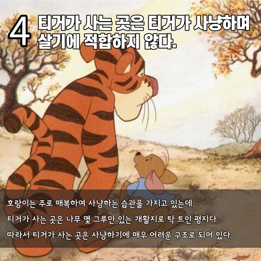 티거가 사는 곳은 티거가 살기에는 적합하지 않다.