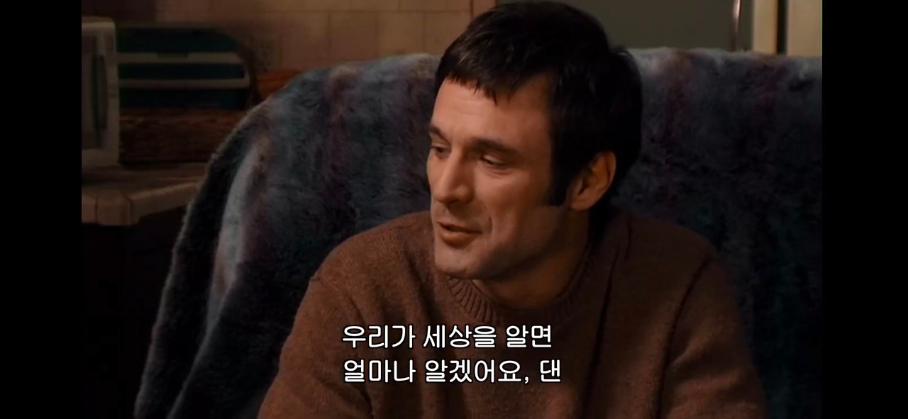각각의 캐릭터 한 명 한 명이 취하는 입장이나 존의 발언에 반응하는 태도를 살펴보면서 나는 누구에 가까운가 생각해보는 게 재밌었던 영화. 내가 저 자리에 있었다면 난 어찌했을까. 당황스럽고 인정하기 힘들어하면서도 티를 내지는 않고 계속해서 유머나 농담을 던져대던 생물학 교수. 속으로는 괴롭지만 존의 이야기를 끝까지 진지하게 들어주려던 댄, 시종일관 시니컬하게 존의 정신상태에 의문을 던지던 아트, 그를 잃을까 걱정하지만 동시에 그의 신성모독 발언에 상처받는 이디스, 그의 말이 진실인지 여부를 떠나 그를 사랑하게 되어버린 샌디 등. 수많은 캐릭터들 중 나와 가장 가까운 사람을 찾아내 보기.