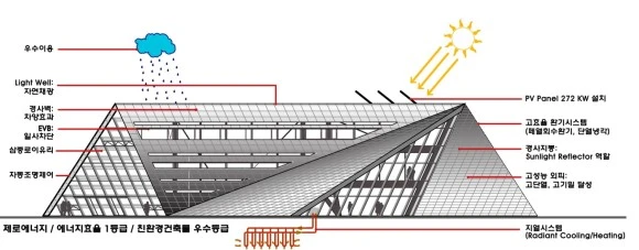 특히 에너지드림센터의 경우 전시시설이기 때문에 관람객 수 예측이 무척 힘들었고 제로에너지 빌딩이라는 타이틀 때문에 마이너스 에너지가 어떤 상황에서도 돼서는 안 되었다. 결과적으로 너무나 큰 운영에 대한 불확실성 때문에 태양광 패널이 좀 과도하게 설치가 되었다.