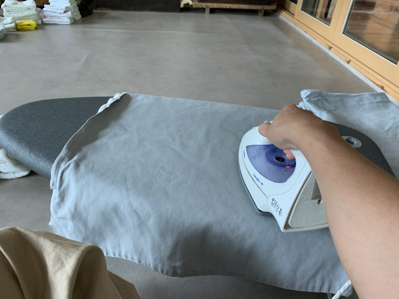 2. 절에 들르시는 신도들이 쓰실 방석 커버를 다림질하고, 커버를 씌우는 일