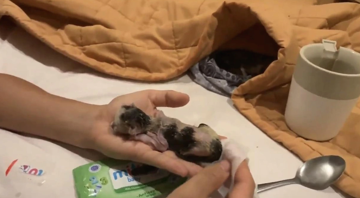 어제 봤던 몰골과는 뚜렷이 다르게, 그 작은 몸을 덮고 있던 털은 다 말라 뽀송해졌다.