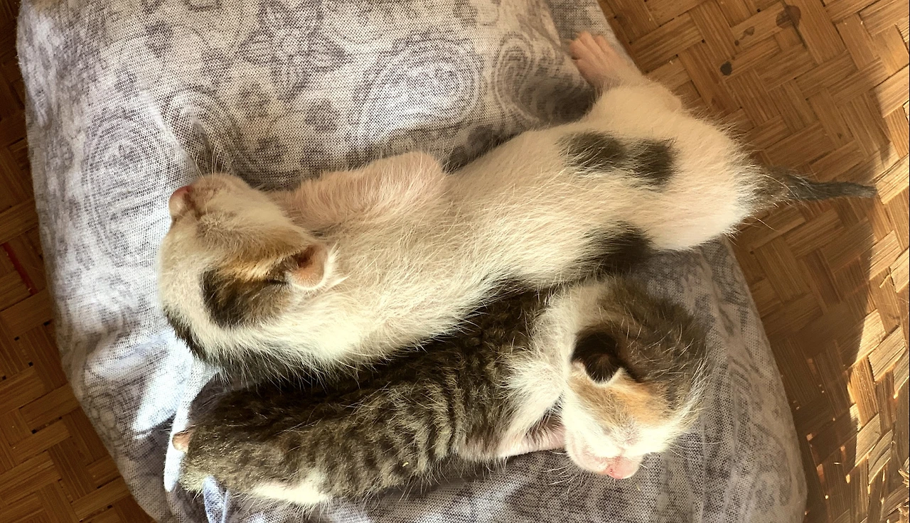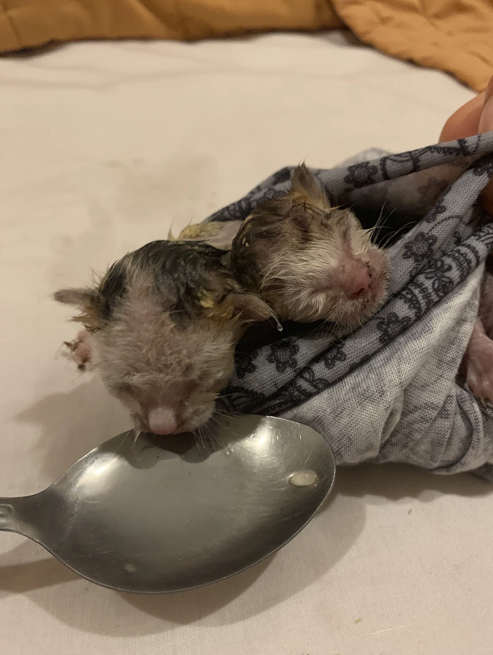 과일 사러가다 눈도 못 뜬 아기 고양이 둘을 거뒀다.