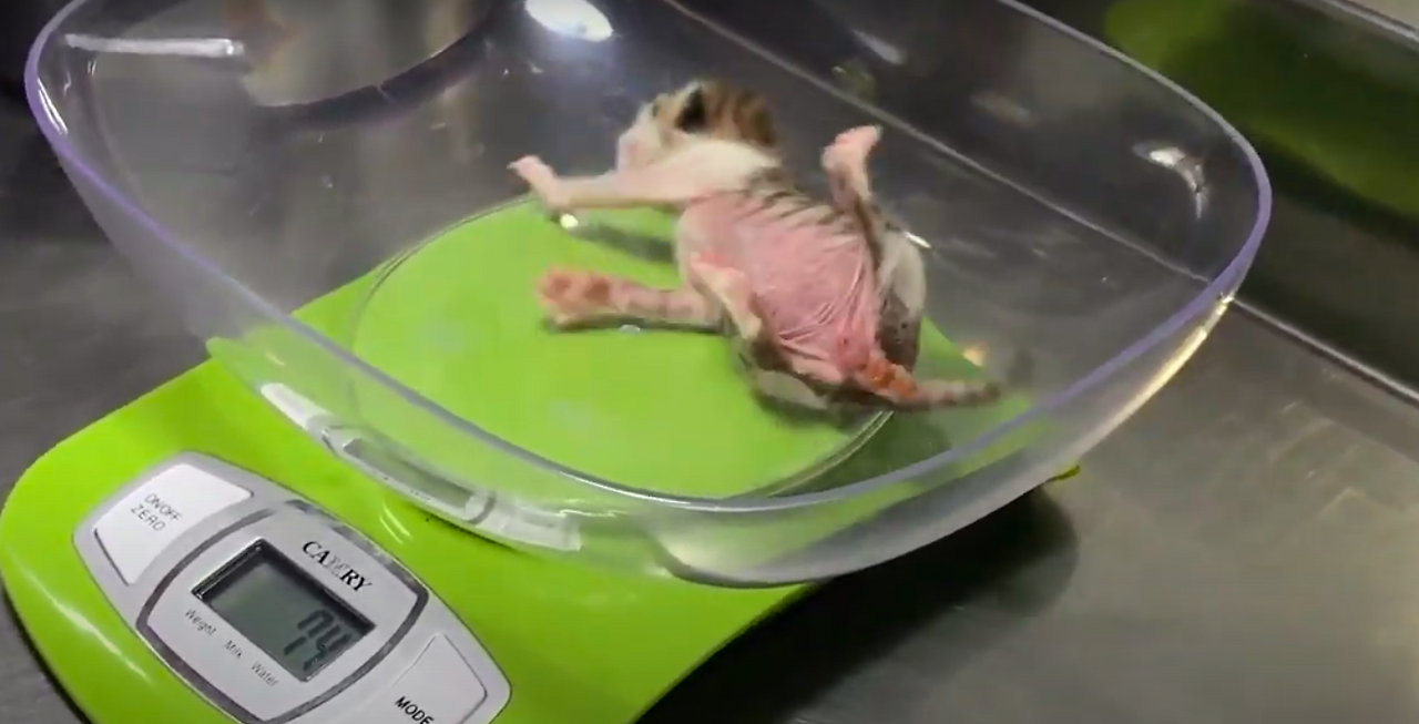 체중계에 올려놓자 뒤뚱거리며 넘어졌다.