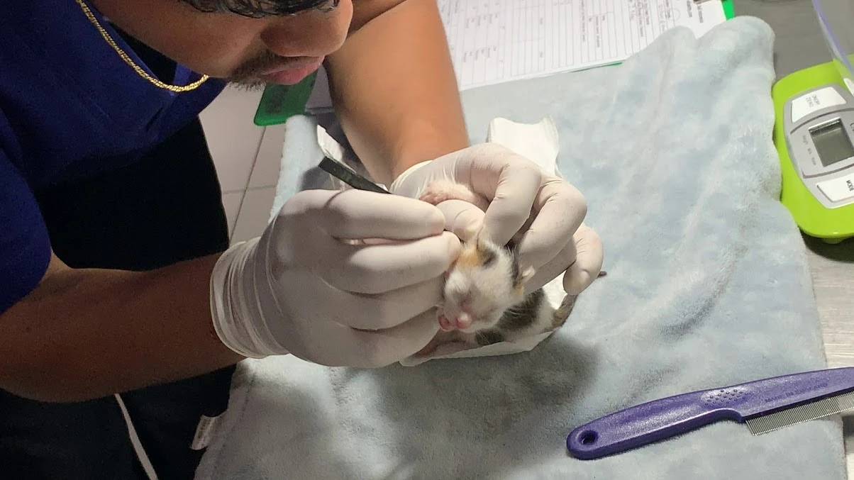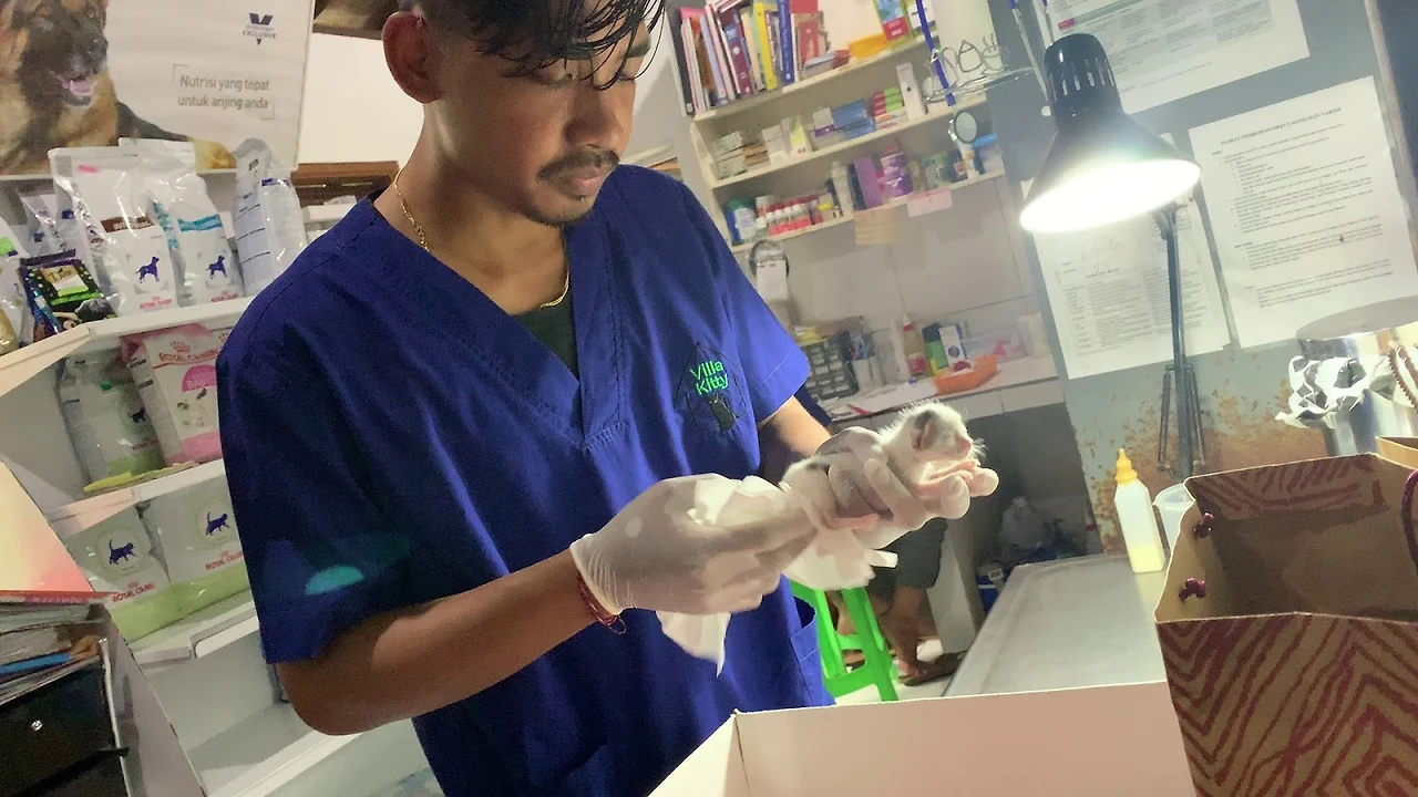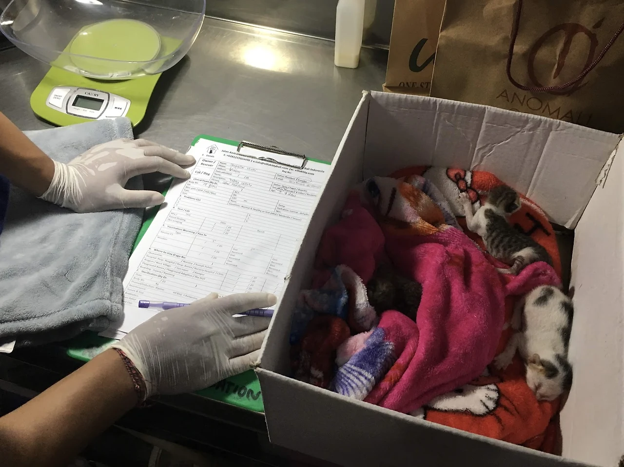 그 옆에 있던 수의사 한 분이 아이들을 진찰하기 시작했다.