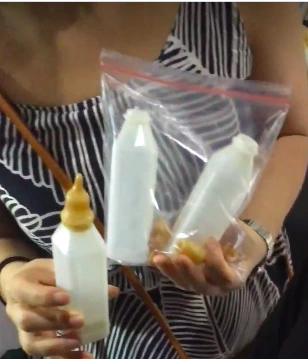 엘리자베스가 담아준 담요, 핫팩, 분유와 젖병들
