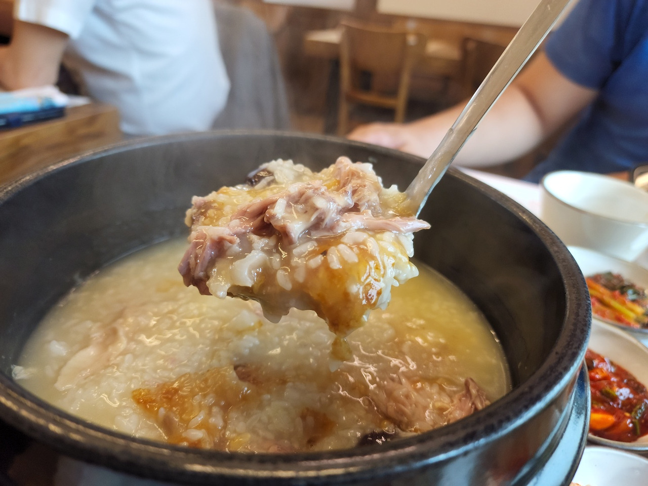 쫄깃하다. 근육질만이 남은 살코기 부스러기의 탄력, 국물과 하나가 된 콜라겐의 꾸덕함, 육수를 한껏 머금어 한층 업그레이드된 쌀알의 찰기가 어금니 아래 눌리며 나는 근사한 식감.