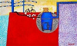 벽에 걸고 있는 그리움비 내리고 바람 불어 가을이 깊다.두 발의 자전거, 파란 전신주,푸른 난로가 계절을 재촉하고그리움은 굴러가는 자전거이다.누군가를 태우고 추억 속으로여행한다면 빈 자전거는 다시부활할 수 있을까.빨간 벽면의 마스크 위에삐져나온 호기심, 푸른 난로멈추어버린 자전거는 두 눈을빛내며 가을을 태운다.2016.9.23*장철희 作