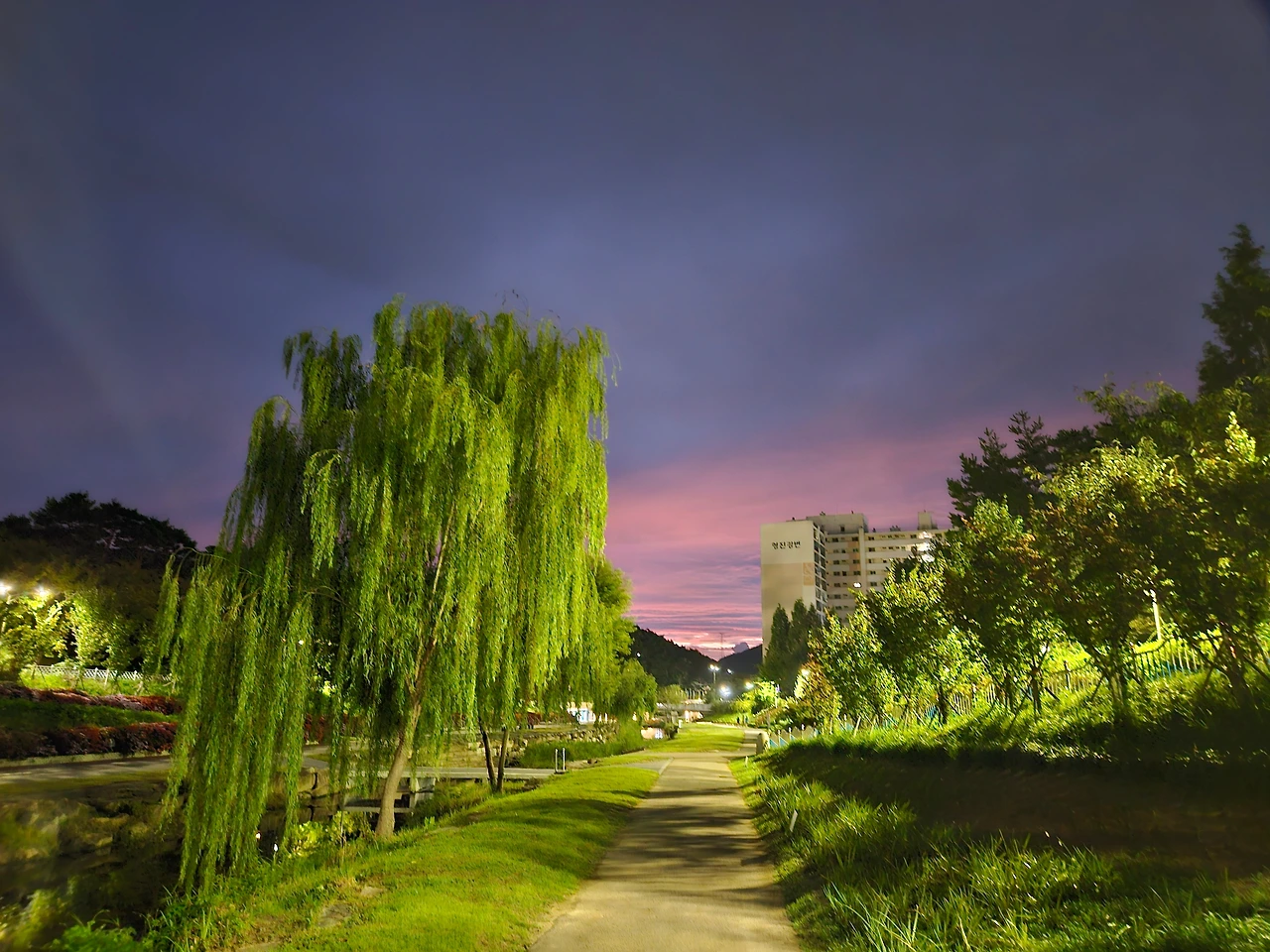 동쪽으로 걸어가는 좌광천 산책길은 밤이 스러지고