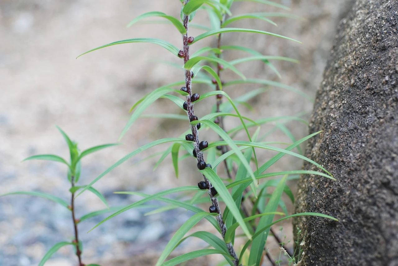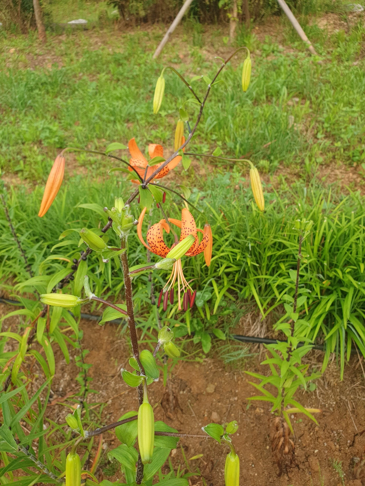 참나리의 검은 씨앗이 드러나게 매달려 있다.