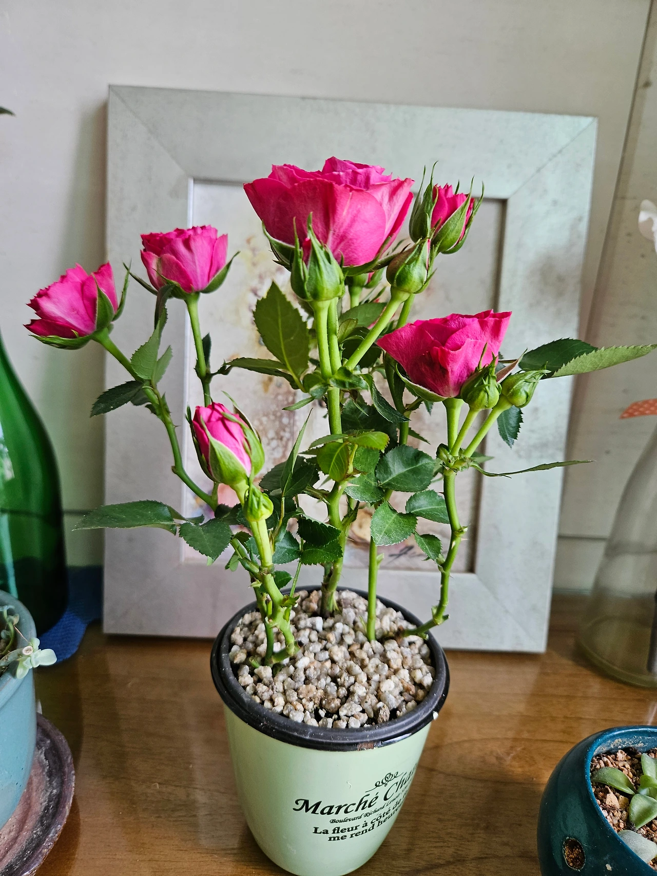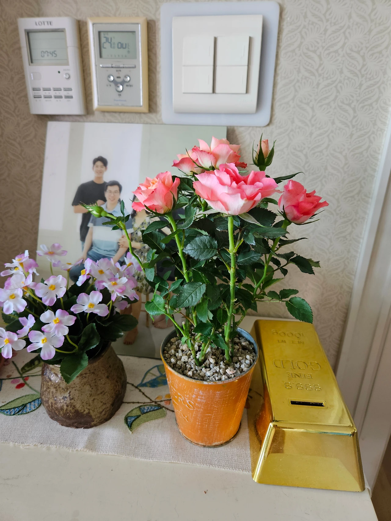 소형 화분의 장미들도 4개나 만들었고, 수경재배를 위한 워터코인도 왔고 활짝 핀 꽃들이 예쁜 카랑코에 하나를 이케아에서 데려 왔다.