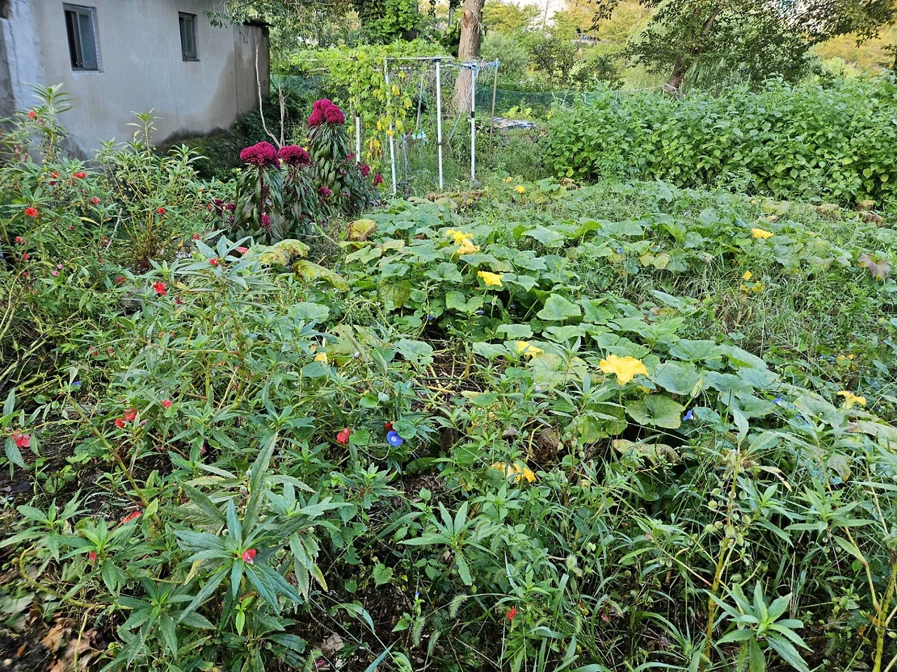 거친 풀 속 맨드라미