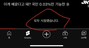 - 지난주에 운동을 가지 않은 것은 초등학교 때 친구 어머님이 그런 말씀을 하셨었기 때문이 아니다. 유튜브 숏츠의 빠른 자극과 침대의 편안함이 더 좋았기 때문이다.