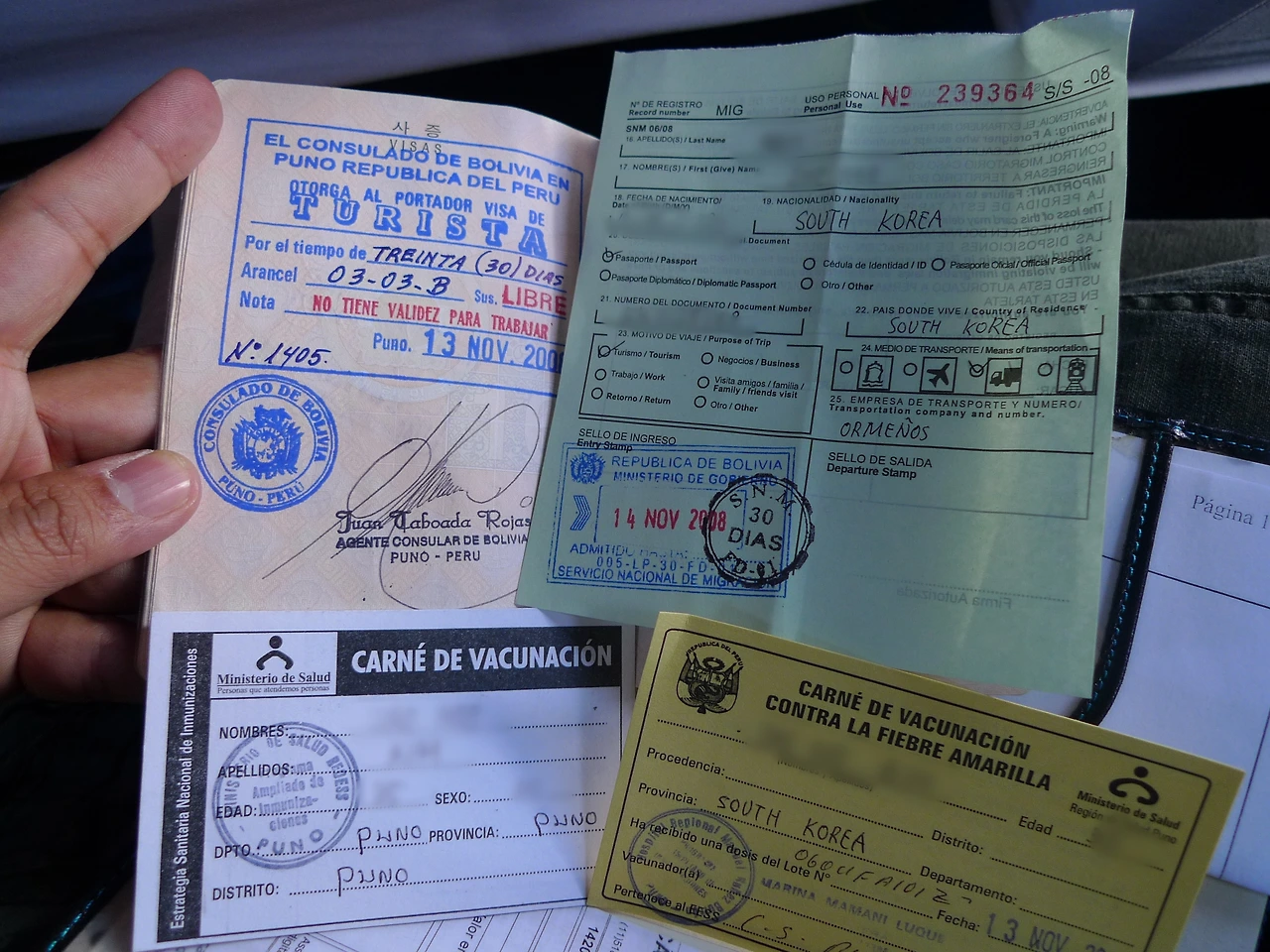 그런데 볼리비아 비자를 받기 위해서는 황열병 접종증이 필요하다는 사실. 푸노의 보건소에서 황열병 예방주사를 맞고 접종증을 -노란색이어서 보통 '옐로 카드'라고 한다- 받을 수 있다는 얘기를 들어서 보건소에 방문했다. 안 통하는 스페인어를 몇 분간 나누며 결국 주사약이 없다는 의미를 겨우 전달받았고, 대신 2달러 정도의 주사비를 내면 옐로 카드를 줄 수 있다고 해서 '짝퉁' 옐로 카드를 발급받았다. (그로부터 4~5년 후에 인천공항 2층에서 정식으로 황열병 접종을 받았고 옐로 카드를 받았다. 유효기간은 10년. 젠장 몇 개월 남았다 ㅜㅠ)