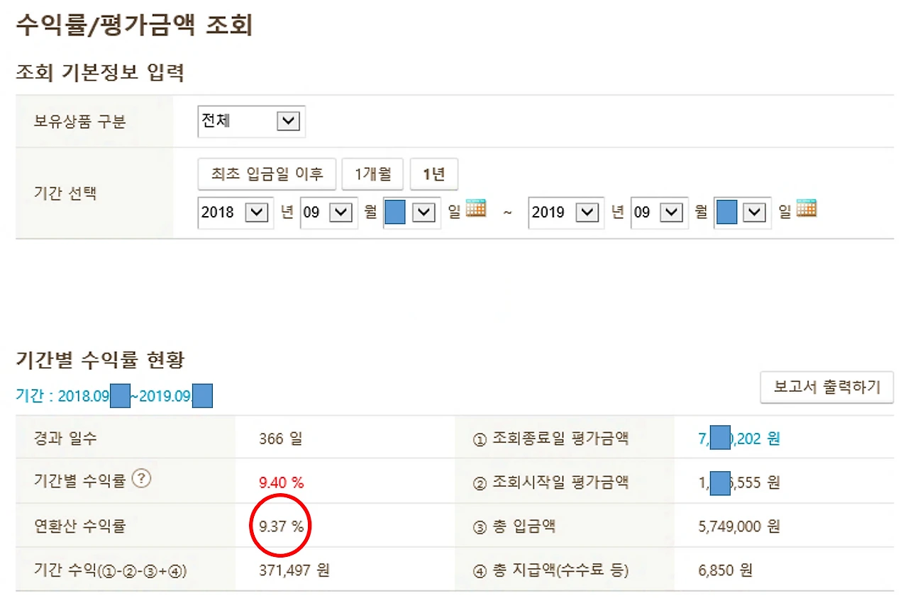이런 사유로 내 은행 잔고를 확인하기 위해서는 어쩔 수 없이 은행 어플에 들어가서 은행 잔고를 확인해야만 했다. 그렇게 계좌 명세를 보다가 한동안 잊고 있던 내 개인형 IRP의 계좌의 수익률을 보았다. 연환산 수익률 9.37%였다.